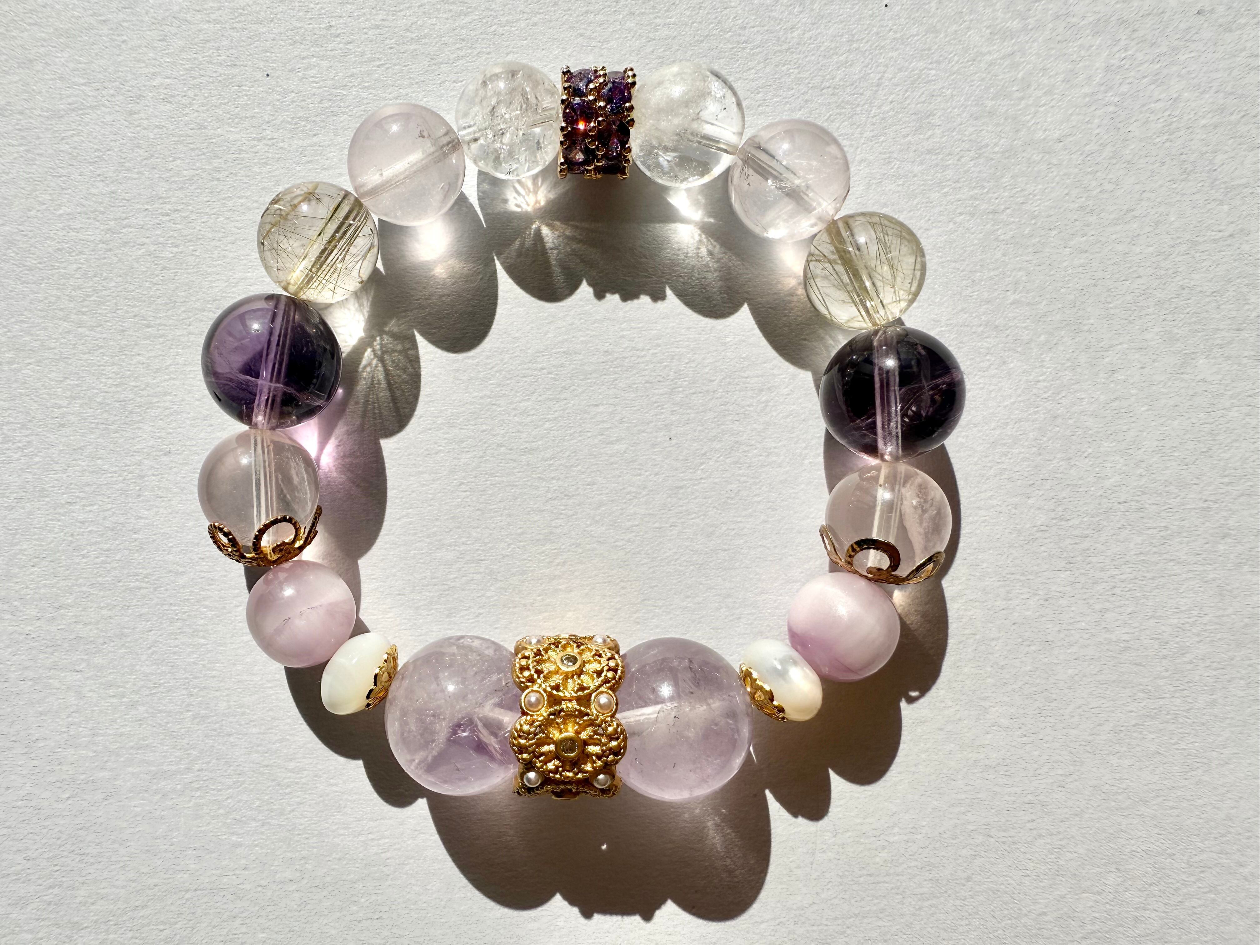 アメジストの静かな癒しと、ルチルクォーツの黄金の輝きが、その光をそっと照らし出し、あなたの未来を明るく導いてくれるでしょう。