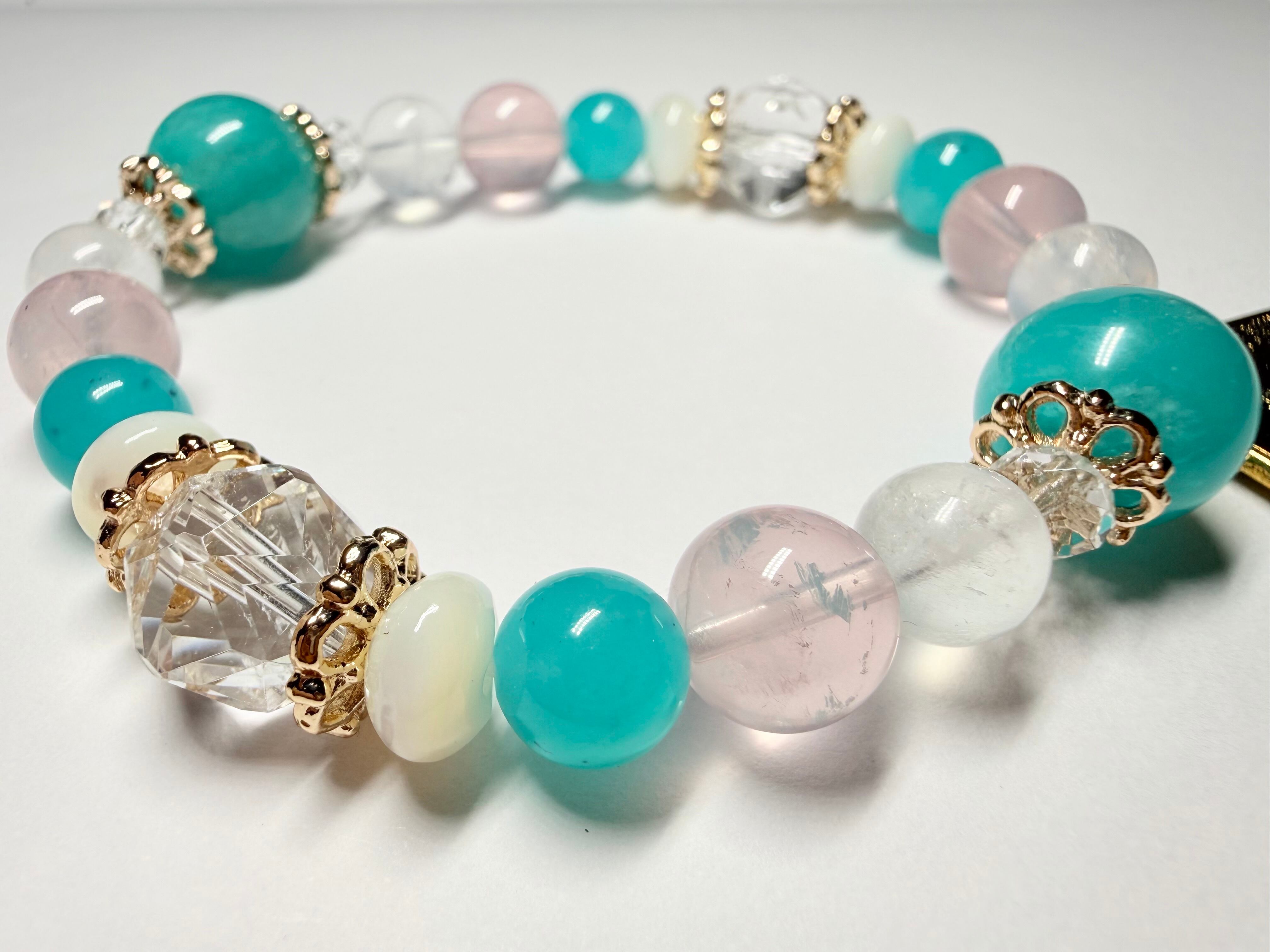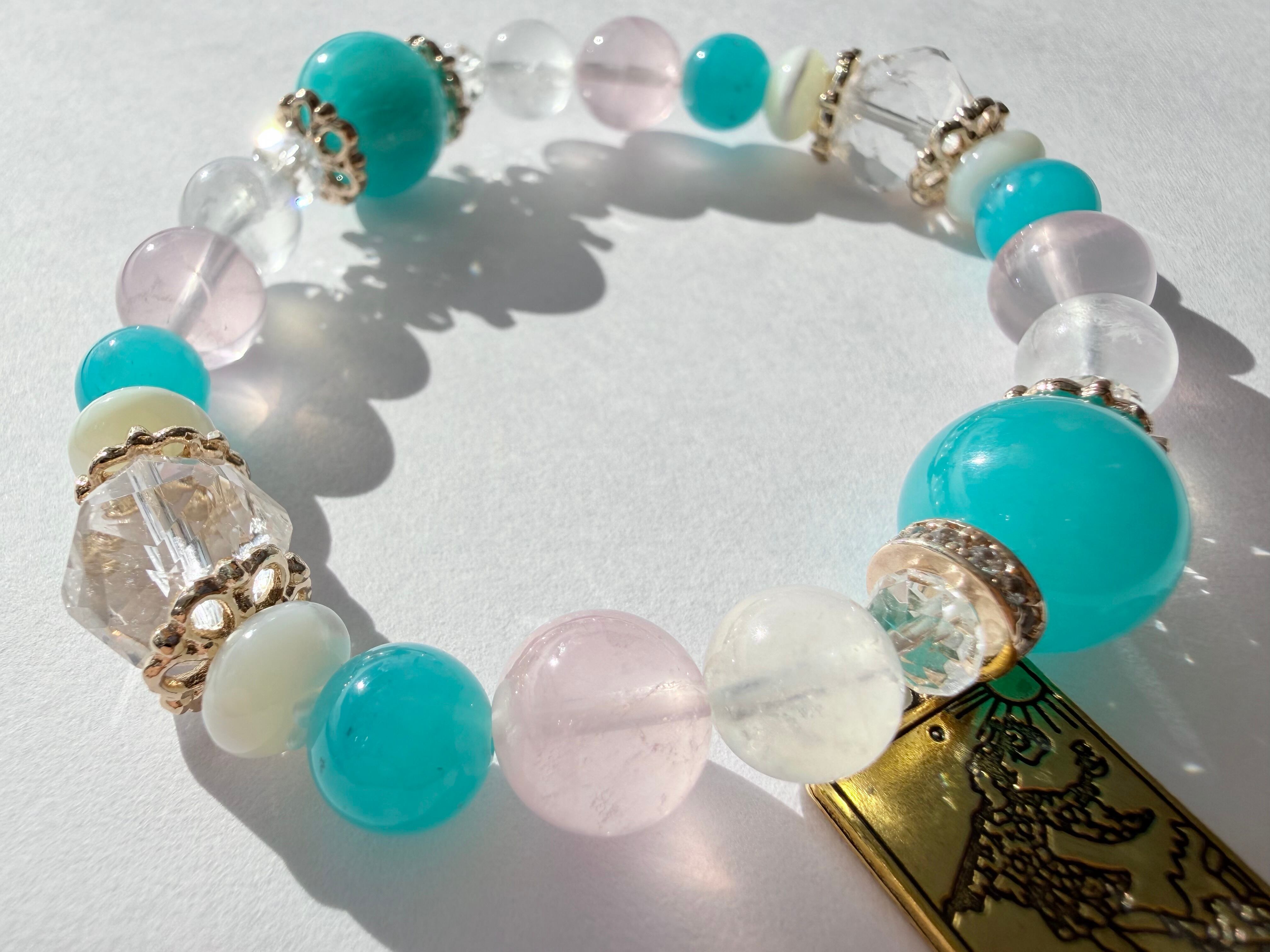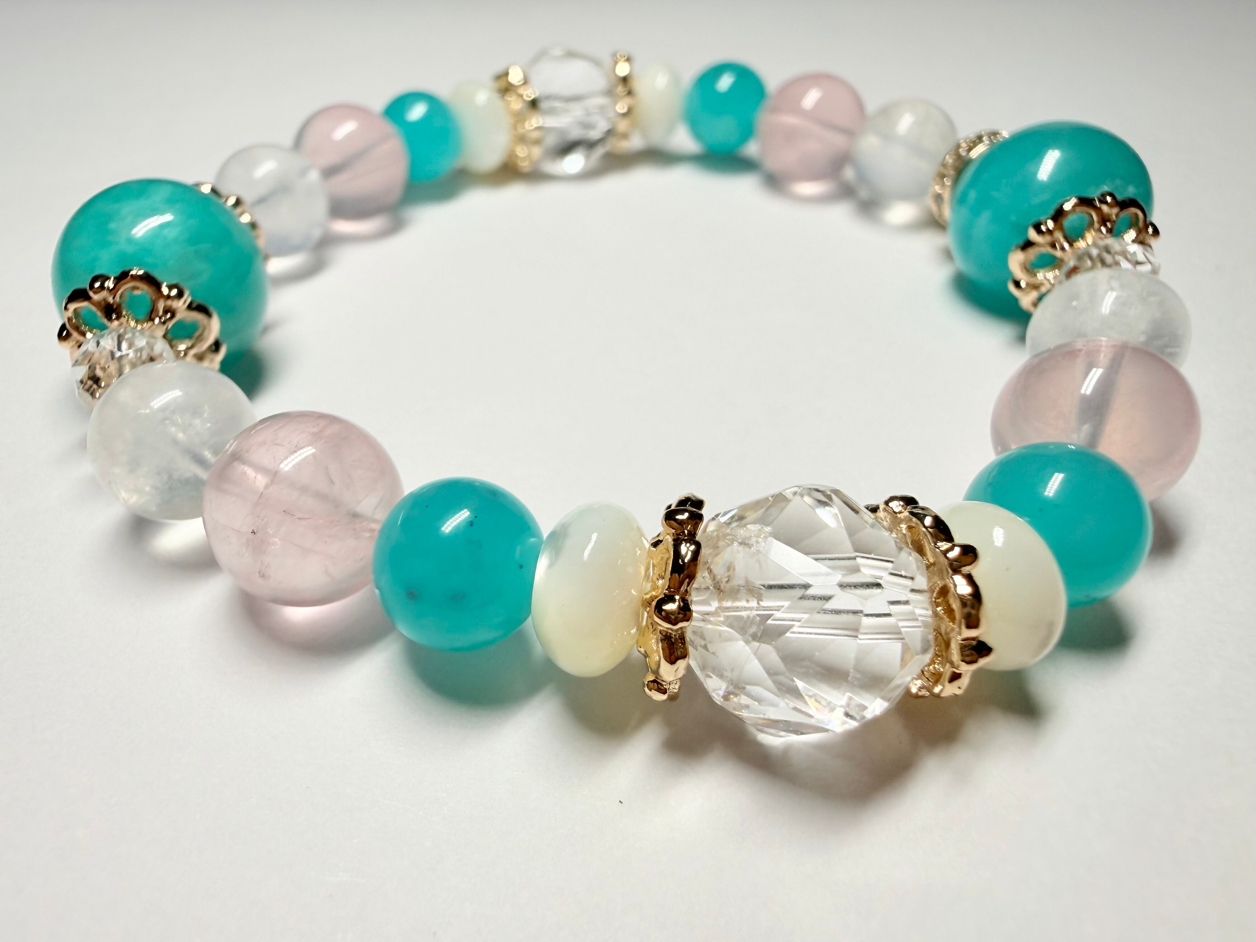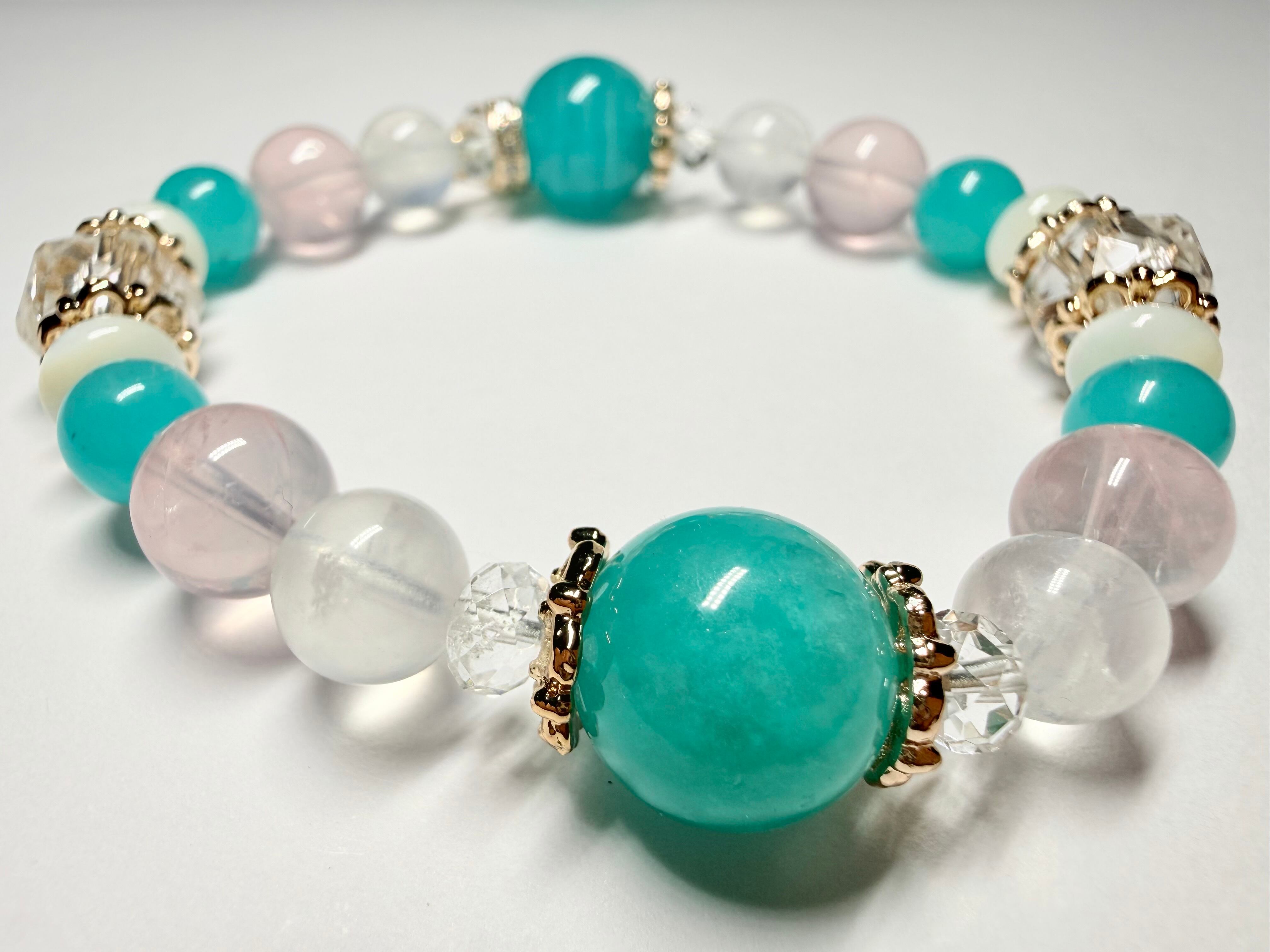メインの位置には希望と前向きさをもたらすアマゾナイトを配置し、