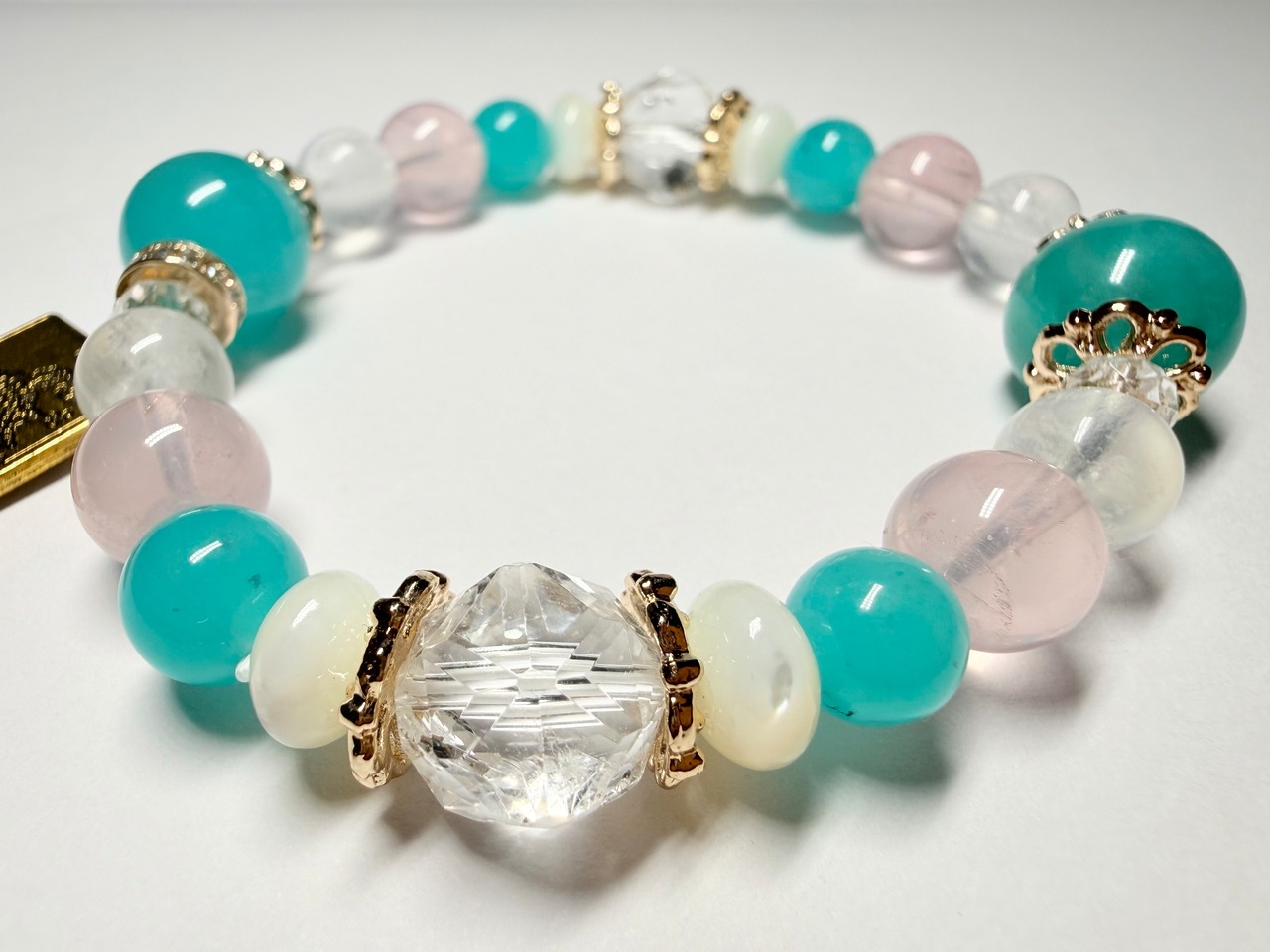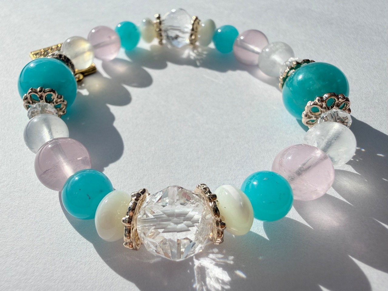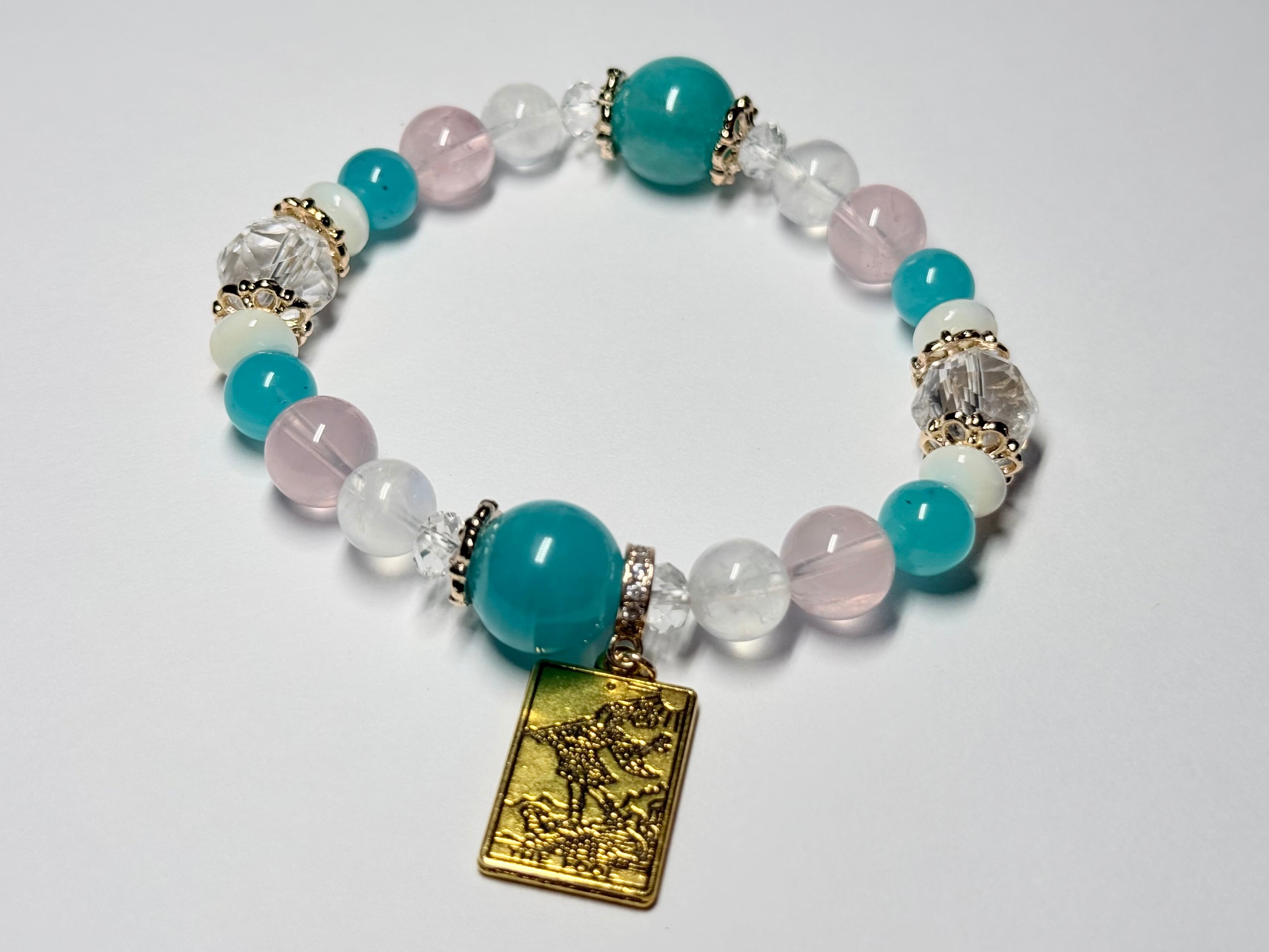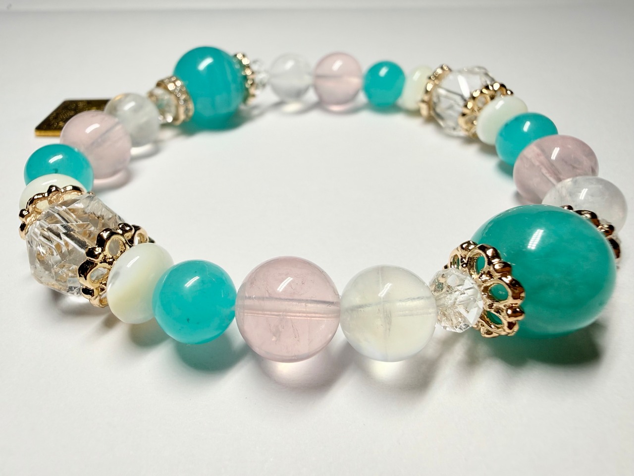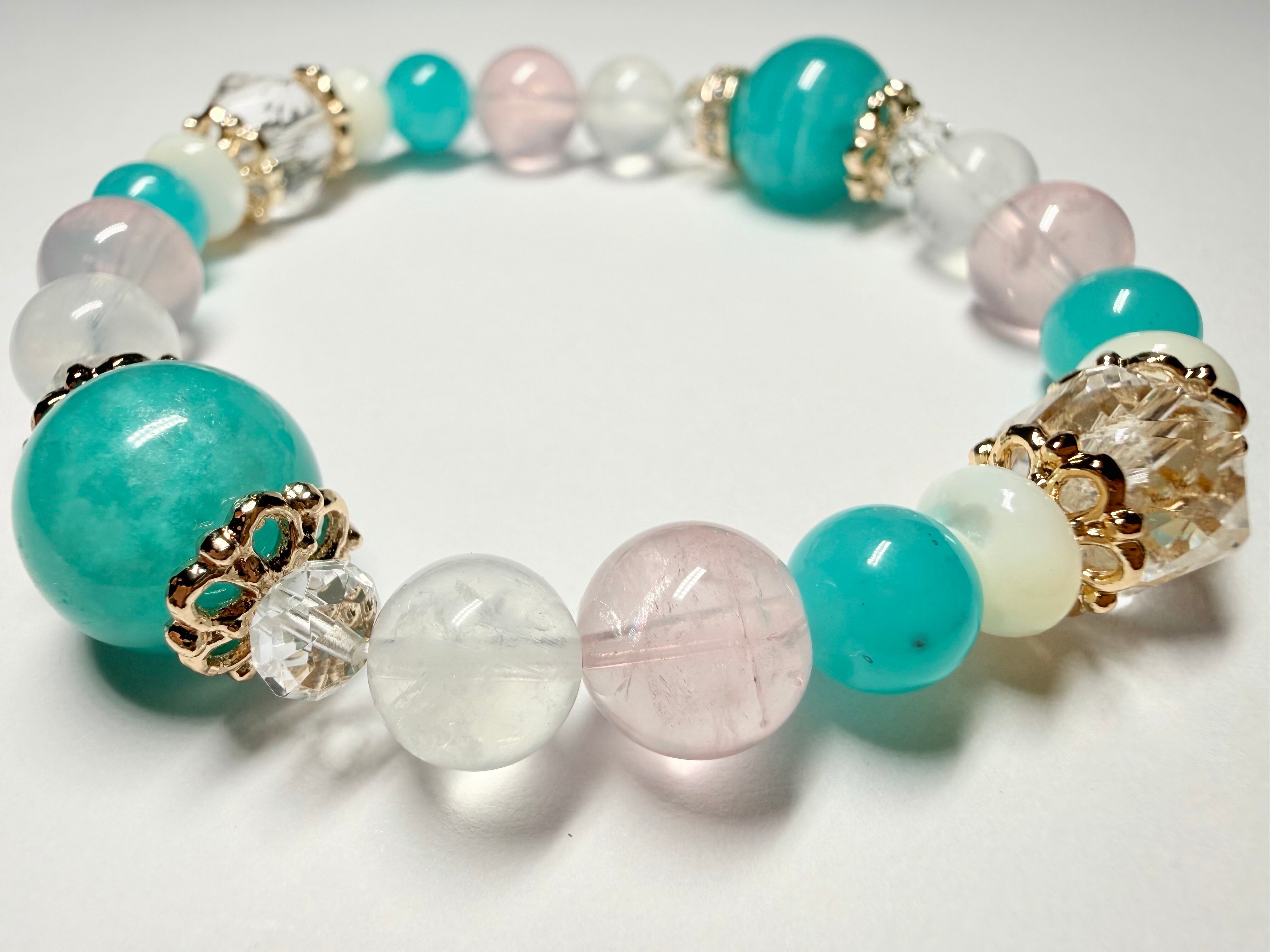 メインの位置には希望と前向きさをもたらすアマゾナイトを配置し、