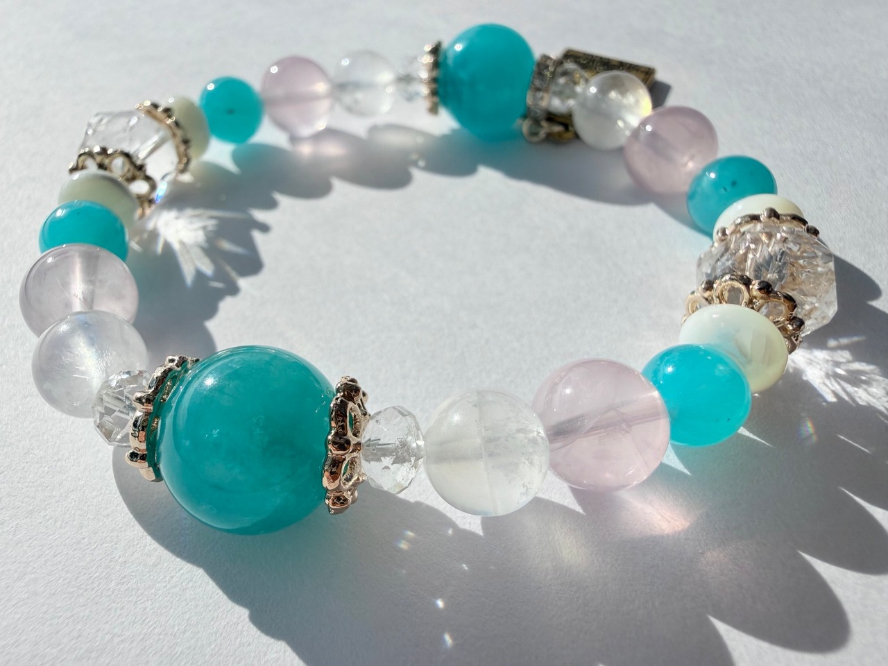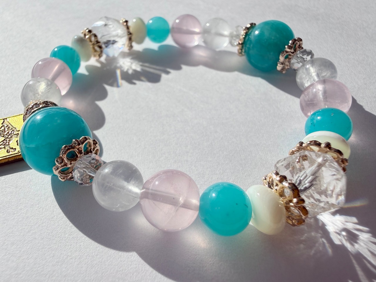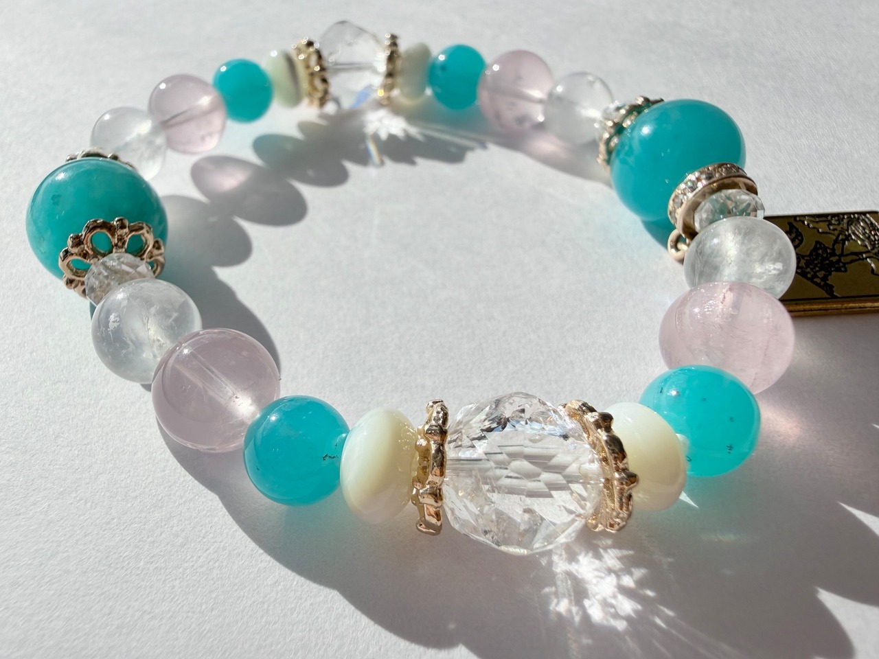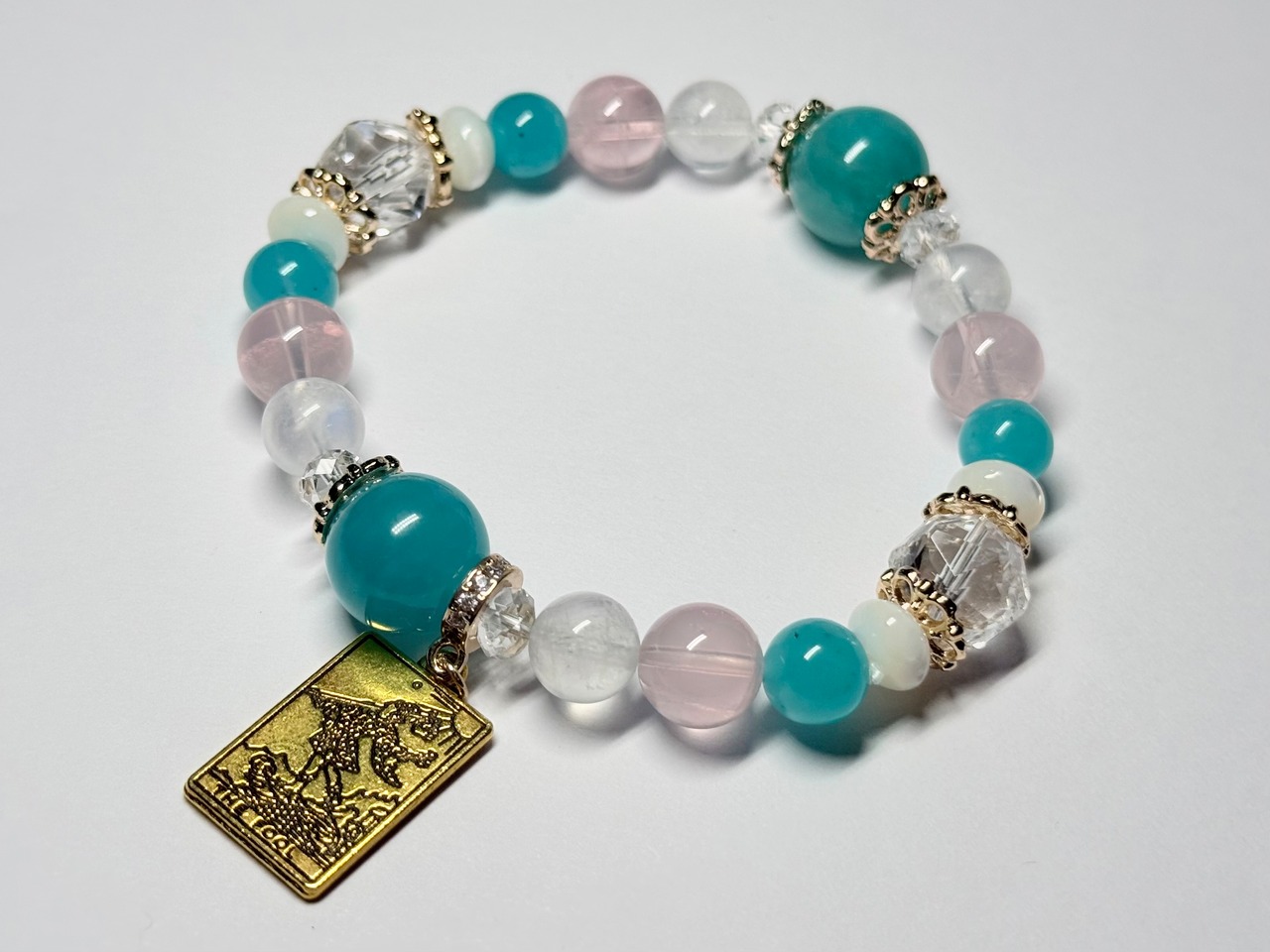 メインの位置には希望と前向きさをもたらすアマゾナイトを配置し、