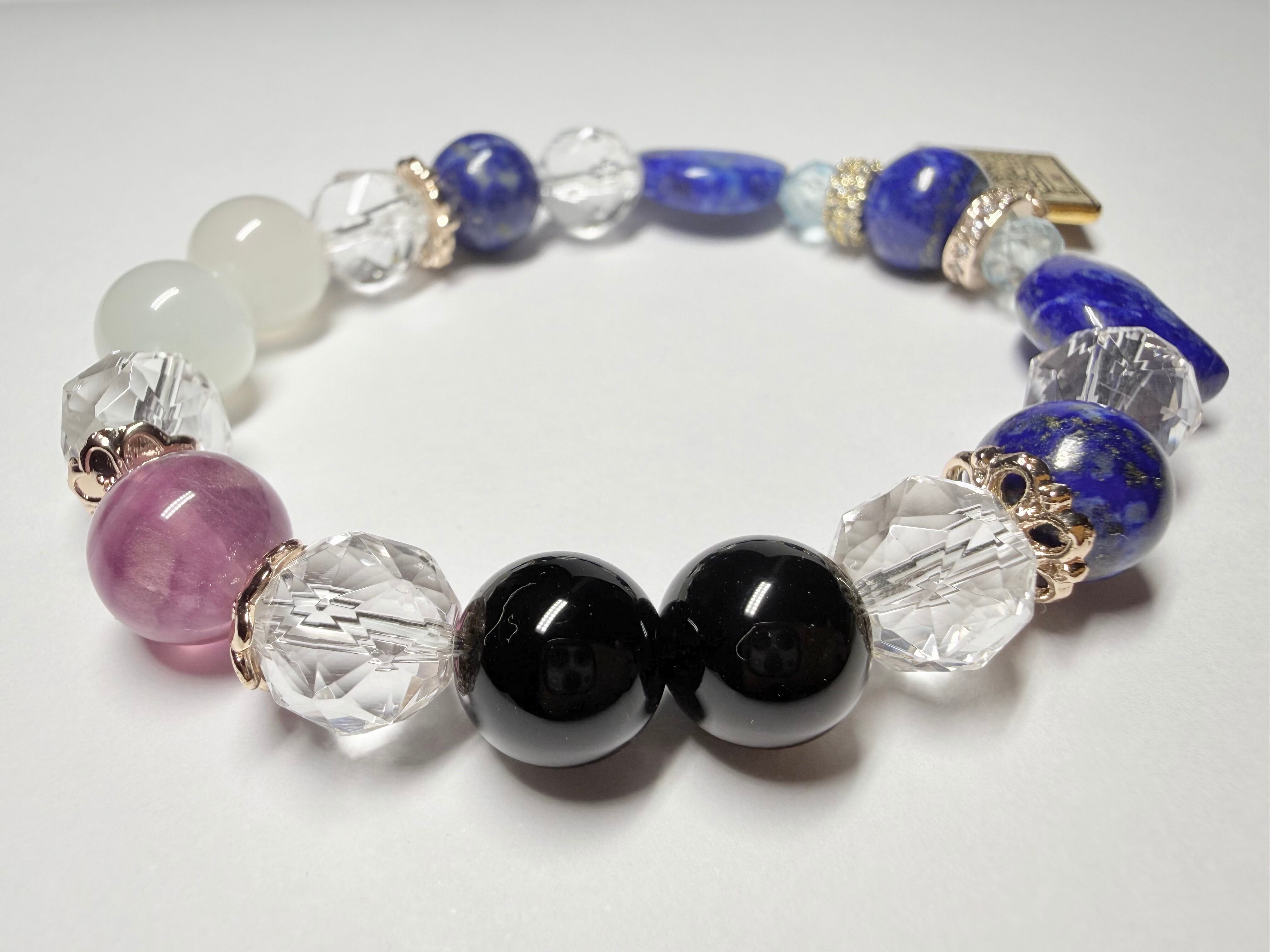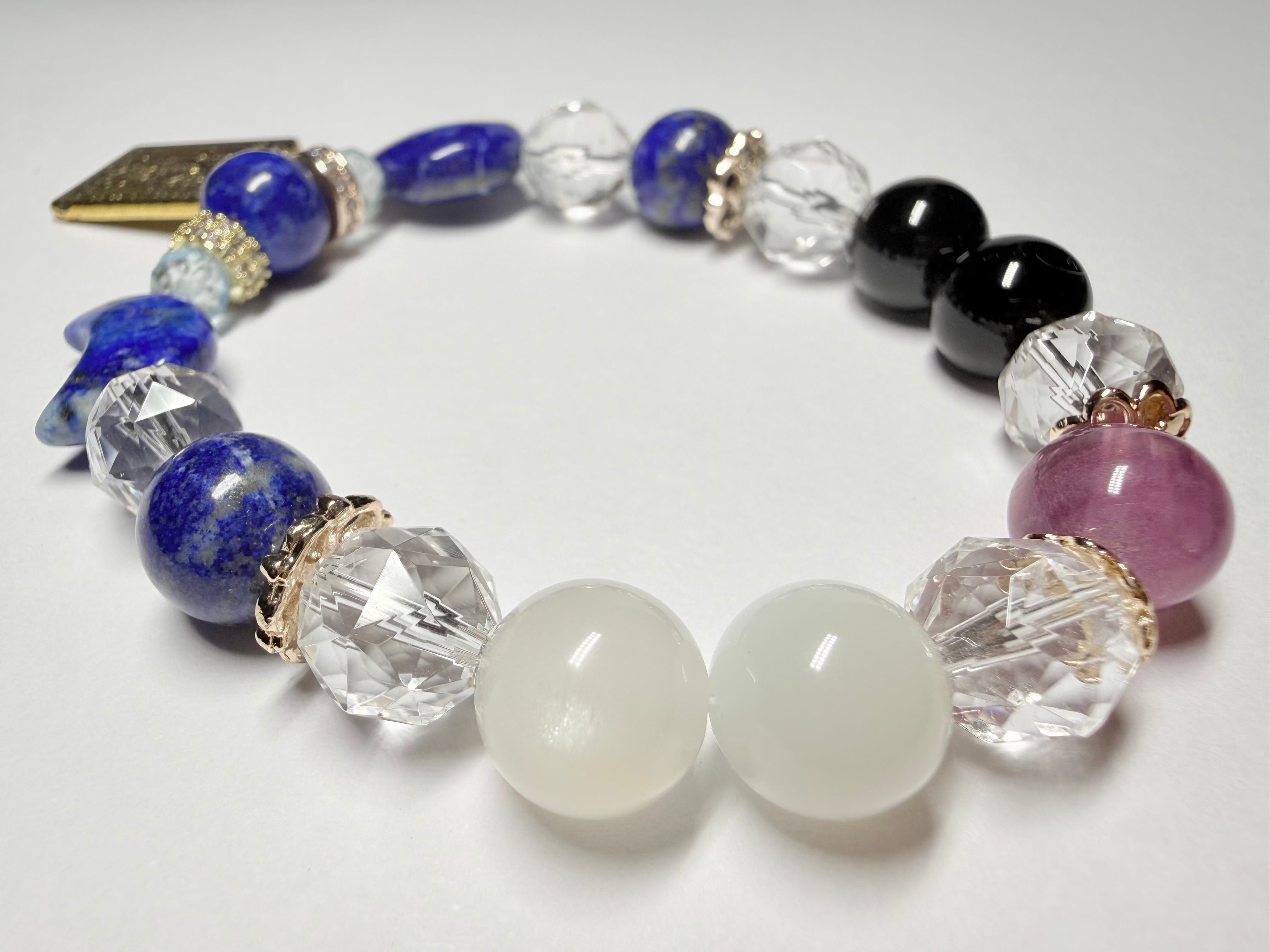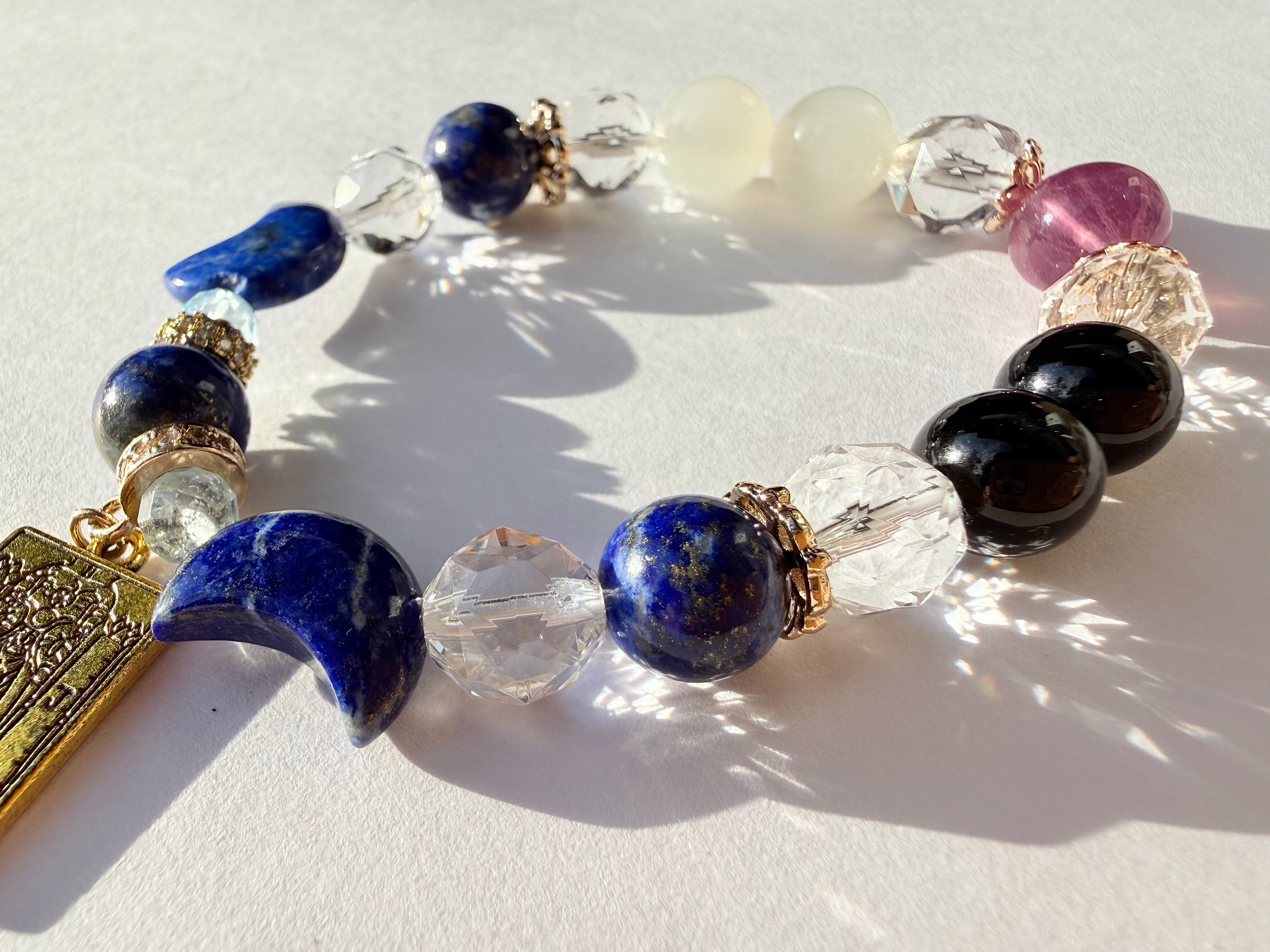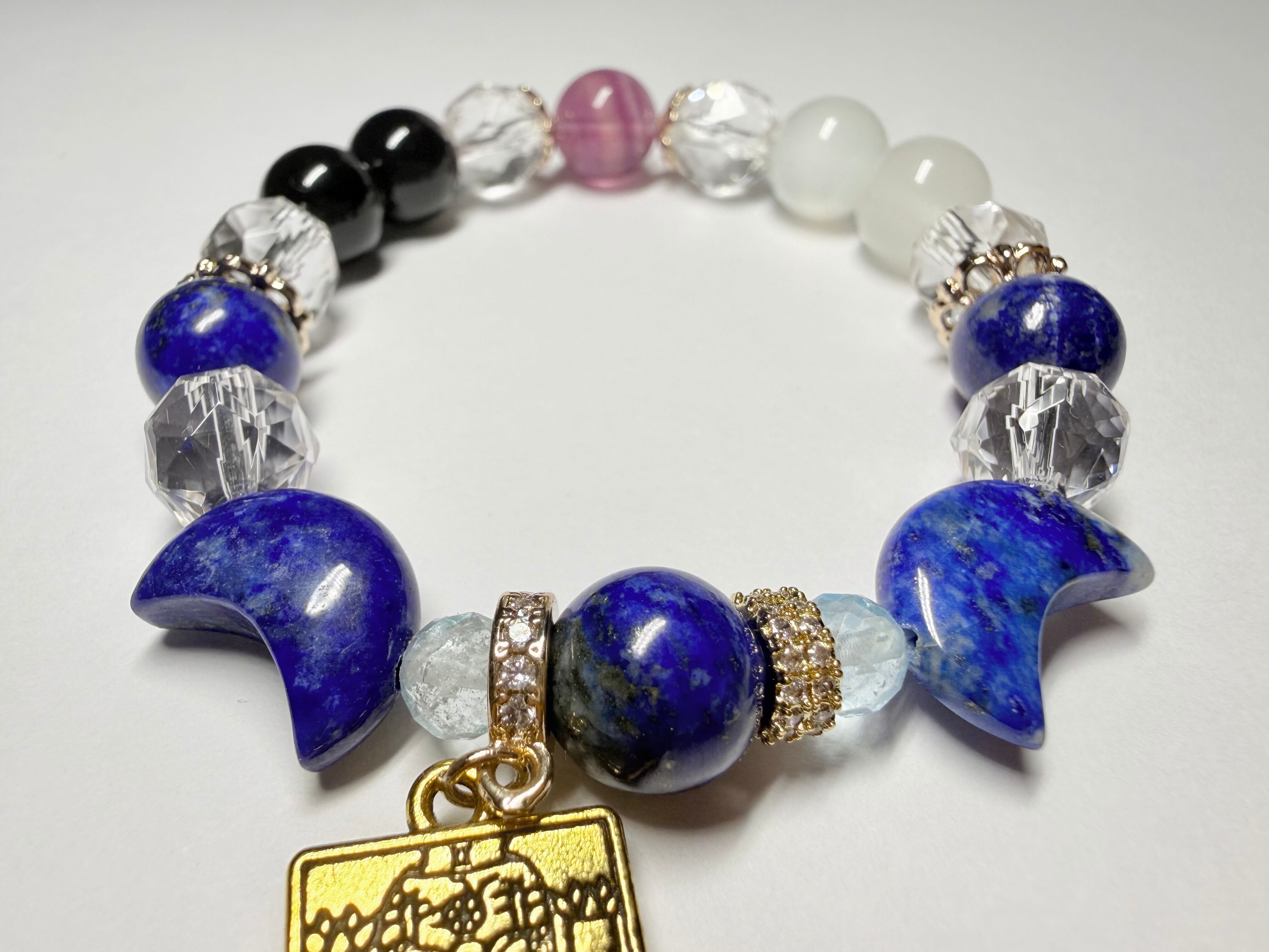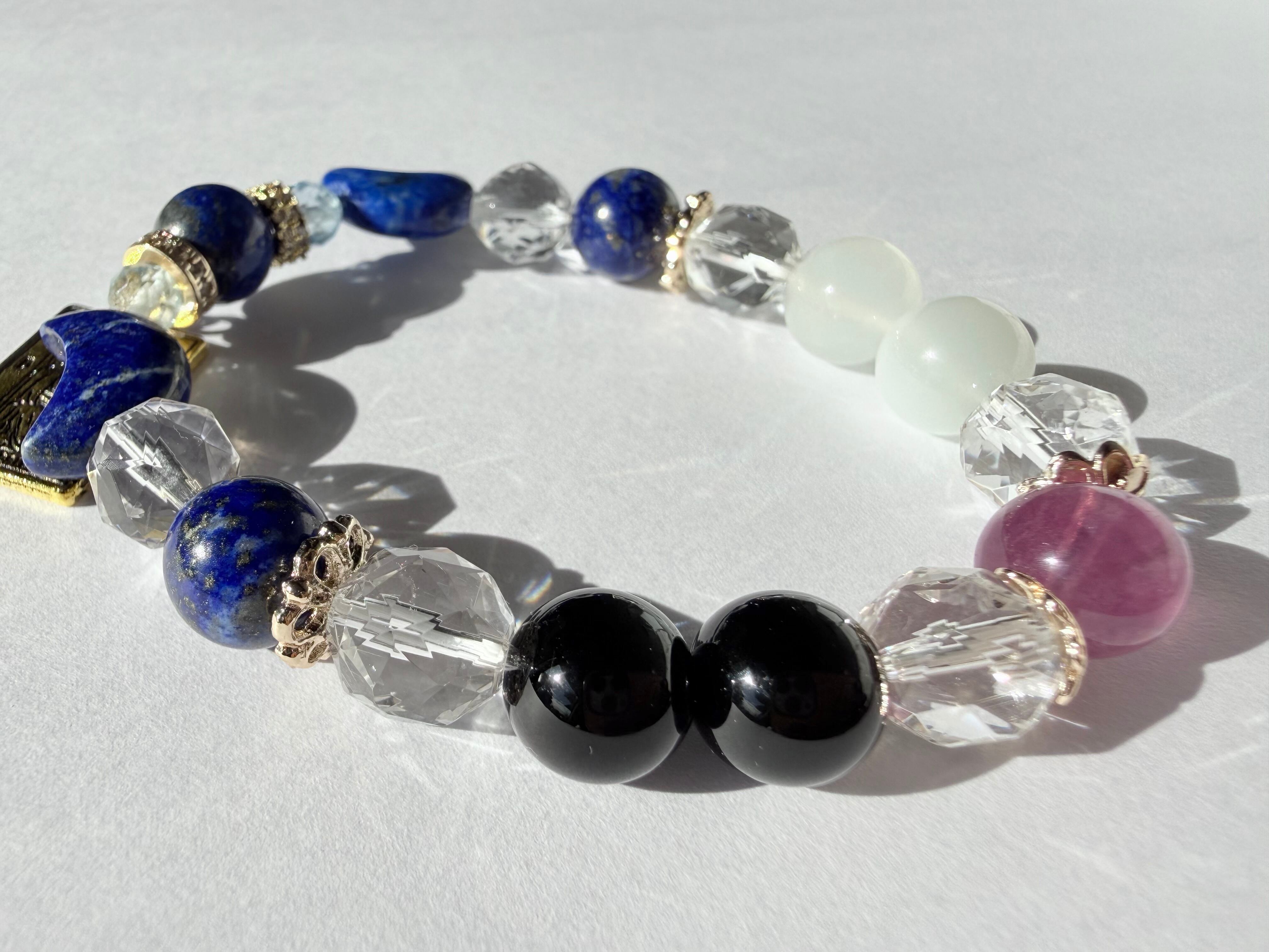 こちらのデザインブレスレットは、タロットカード《女教皇(The High Priestess)》が象徴する「知性・冷静」をテーマにお作りしました。