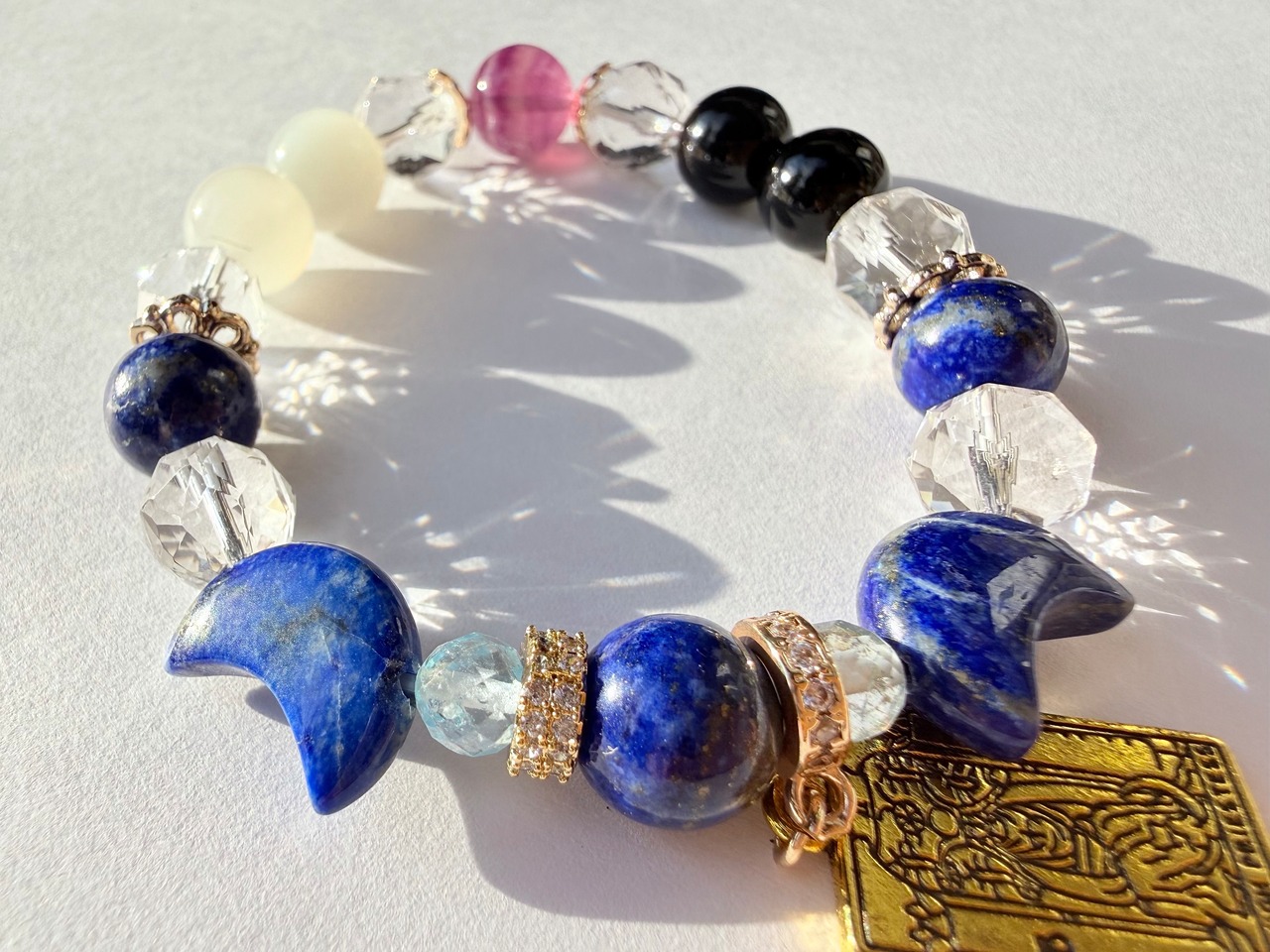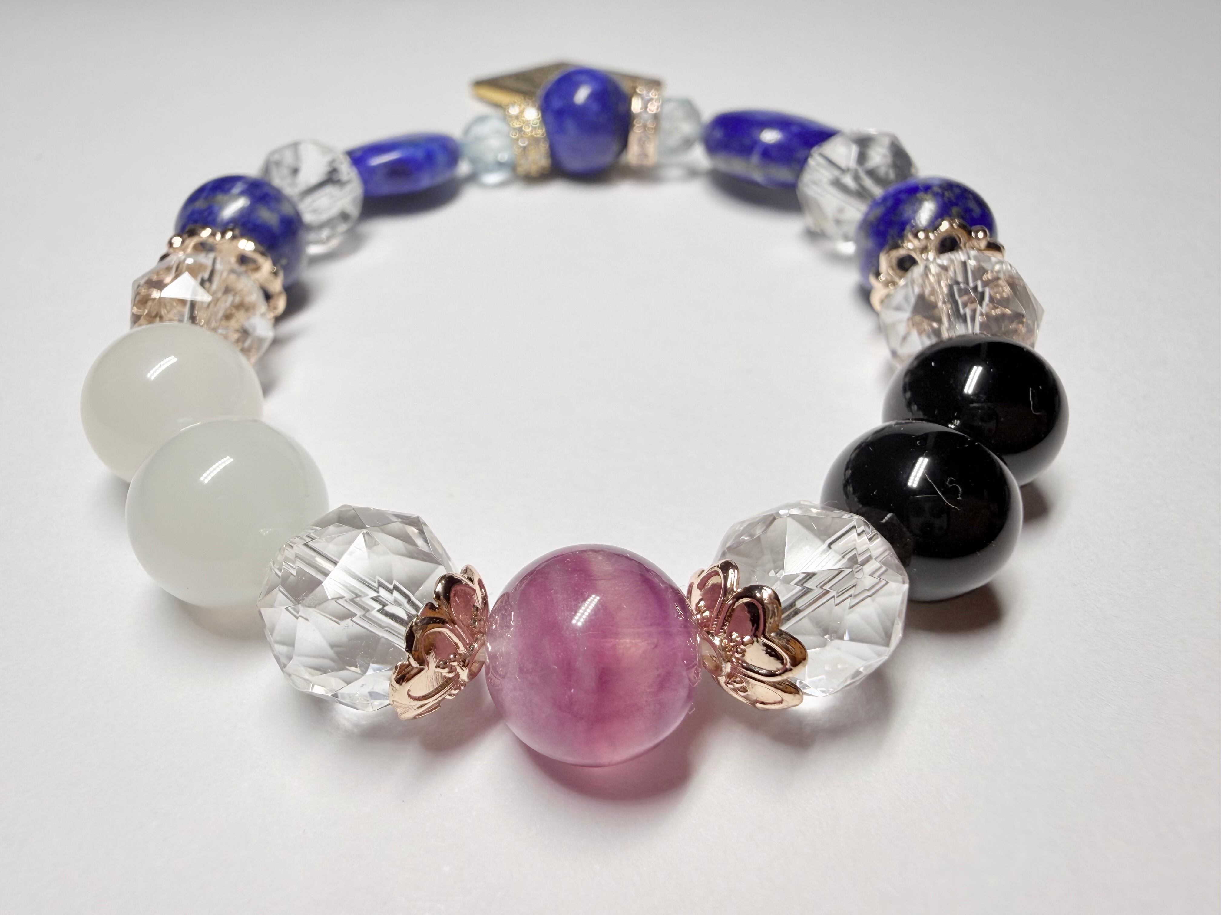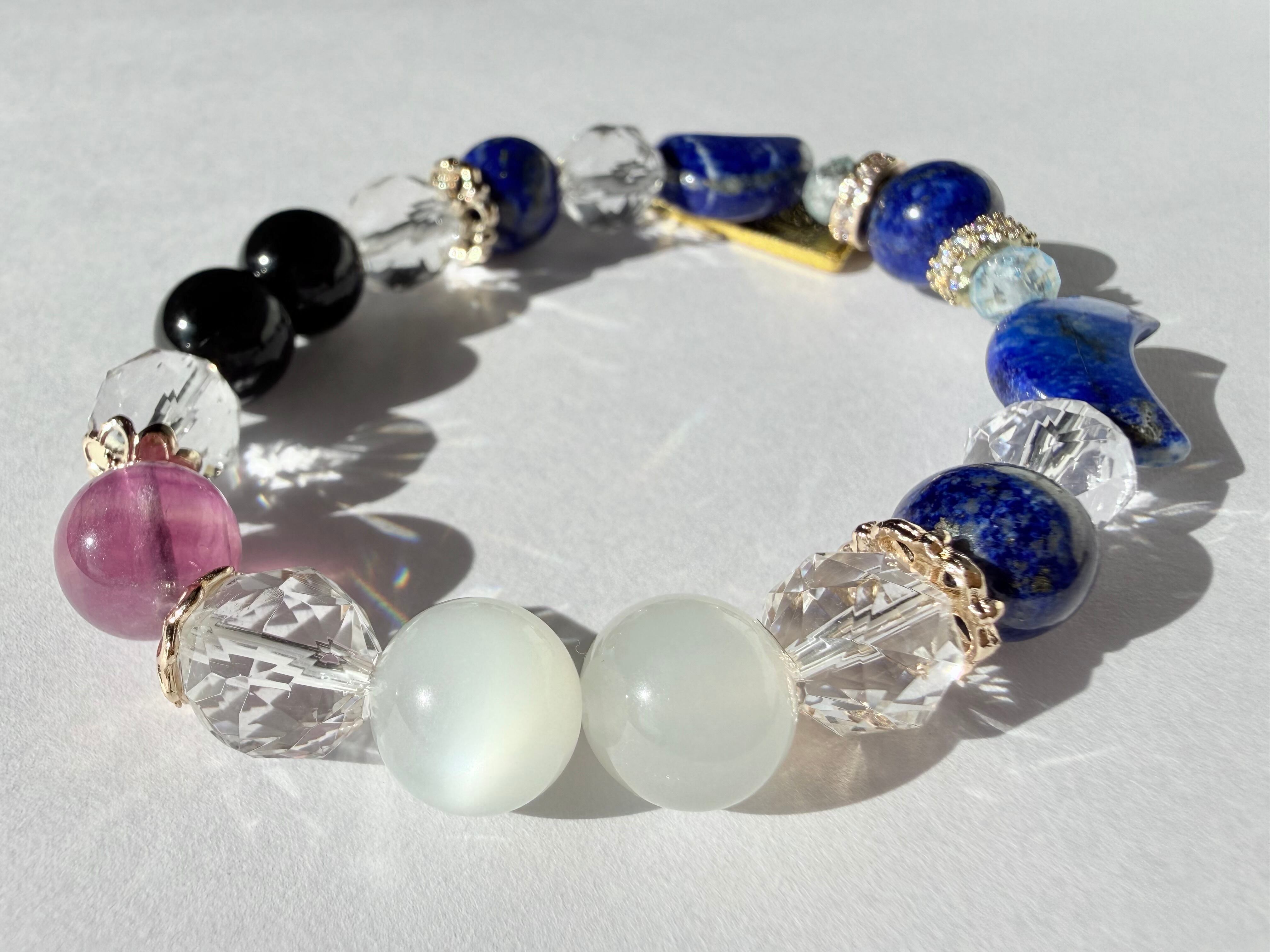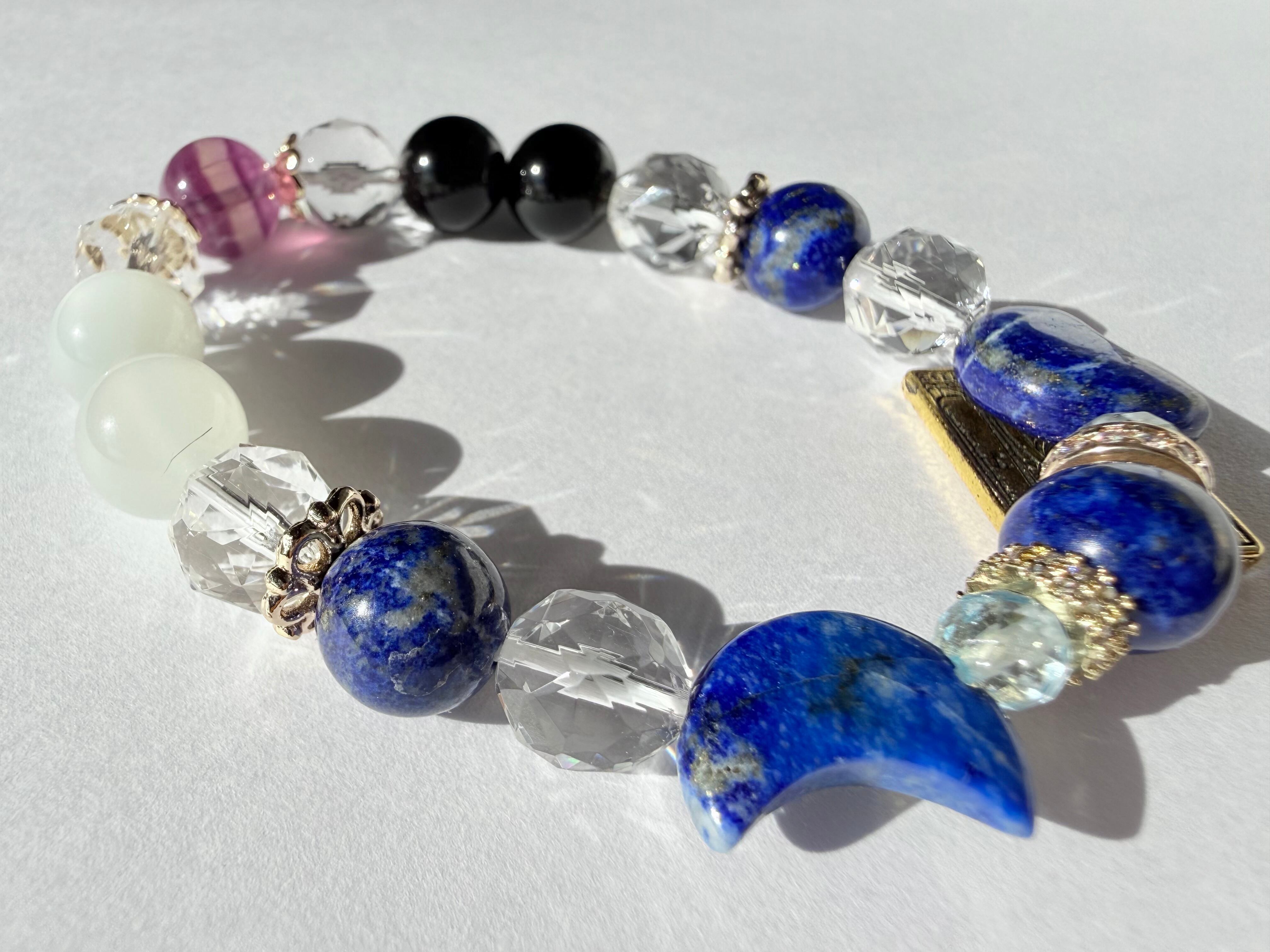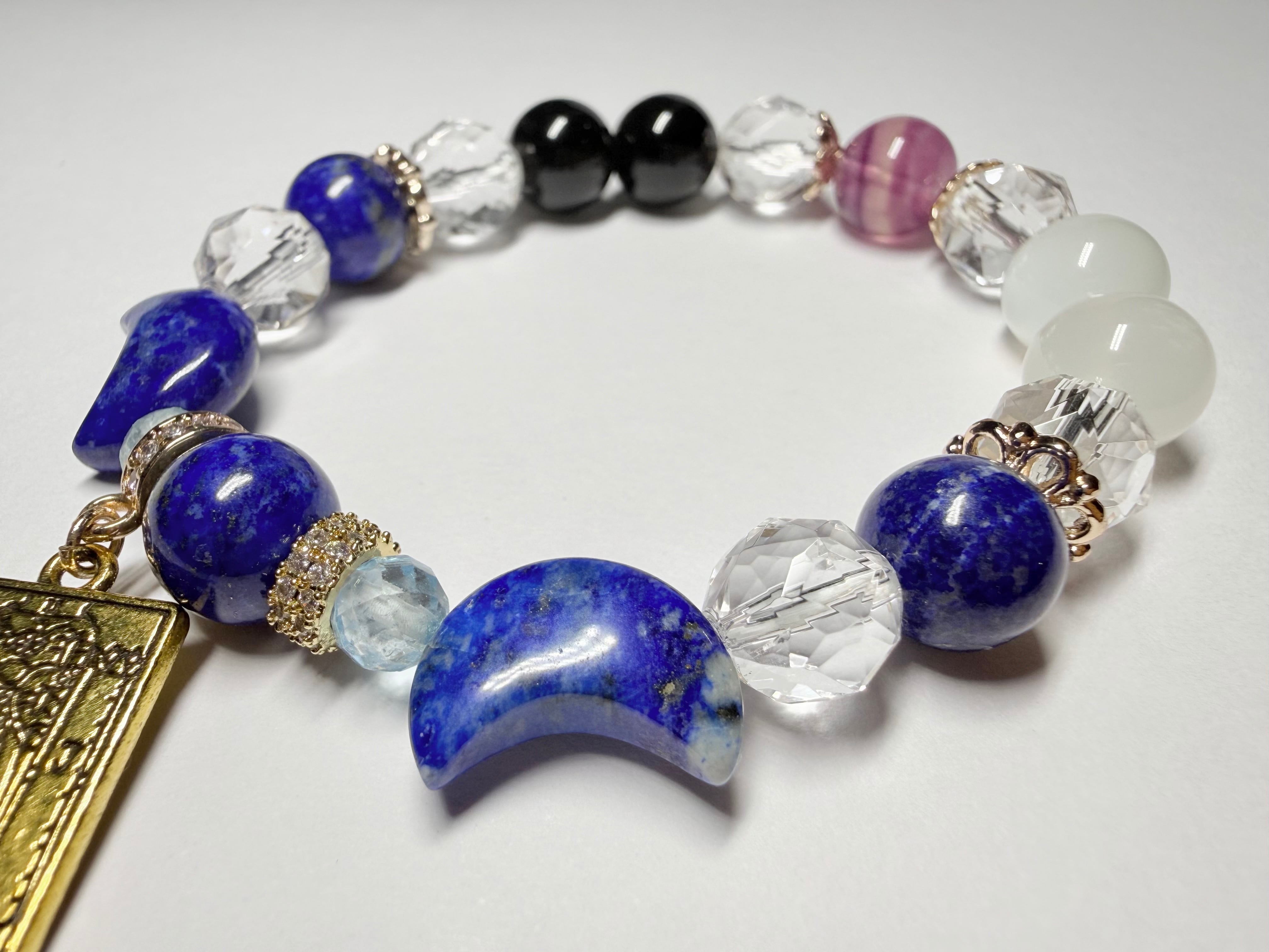 こちらのデザインブレスレットは、タロットカード《女教皇(The High Priestess)》が象徴する「知性・冷静」をテーマにお作りしました。