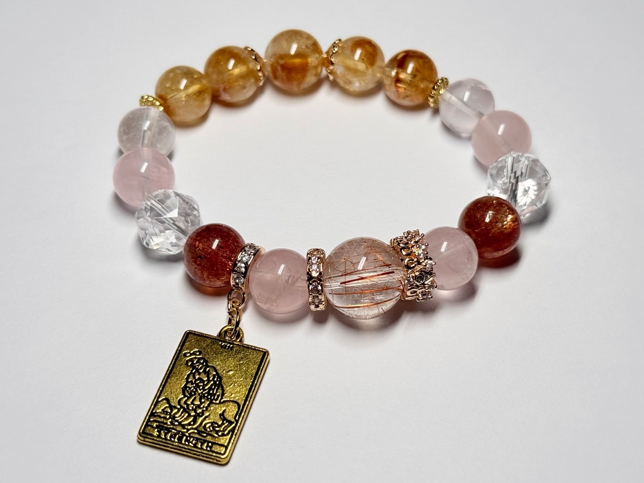 こちらのデザインブレスレットは、タロットカード《女教皇(The High Priestess)》が象徴する「知性・冷静」をテーマにお作りしました。