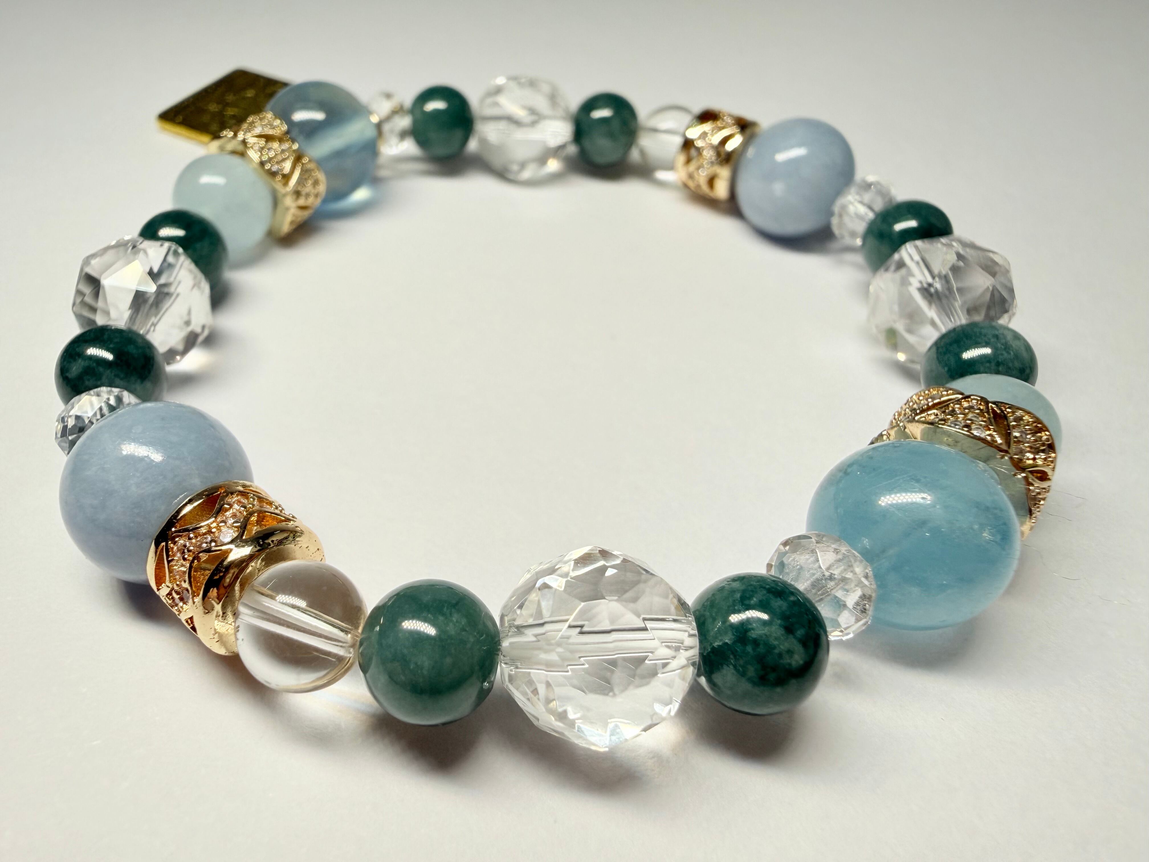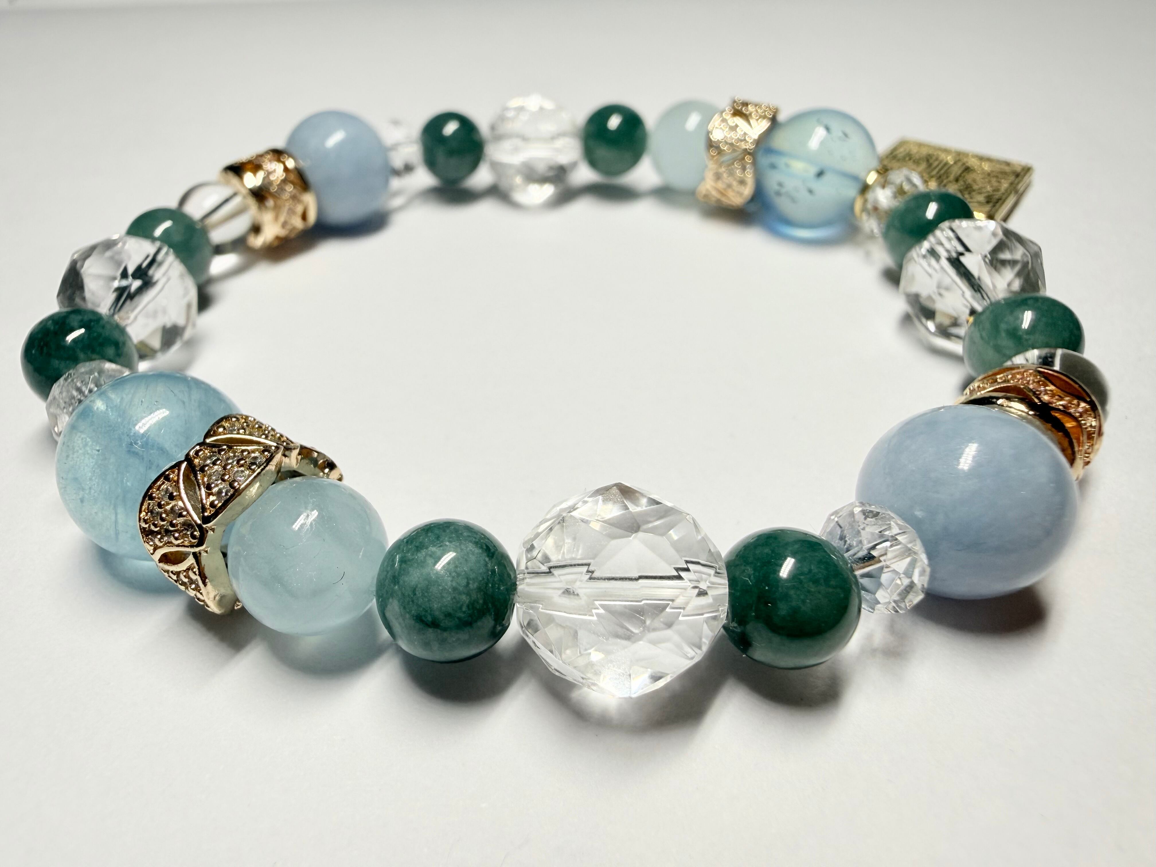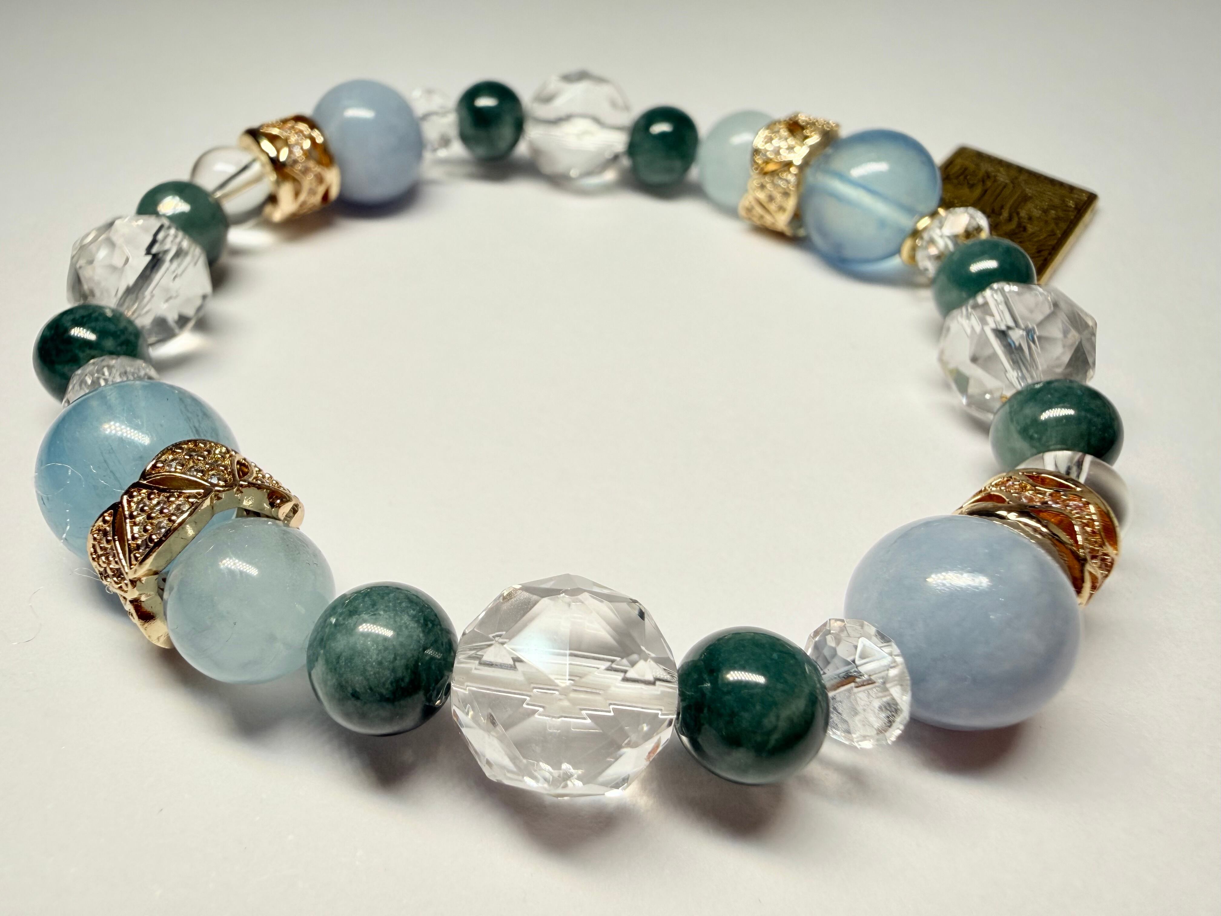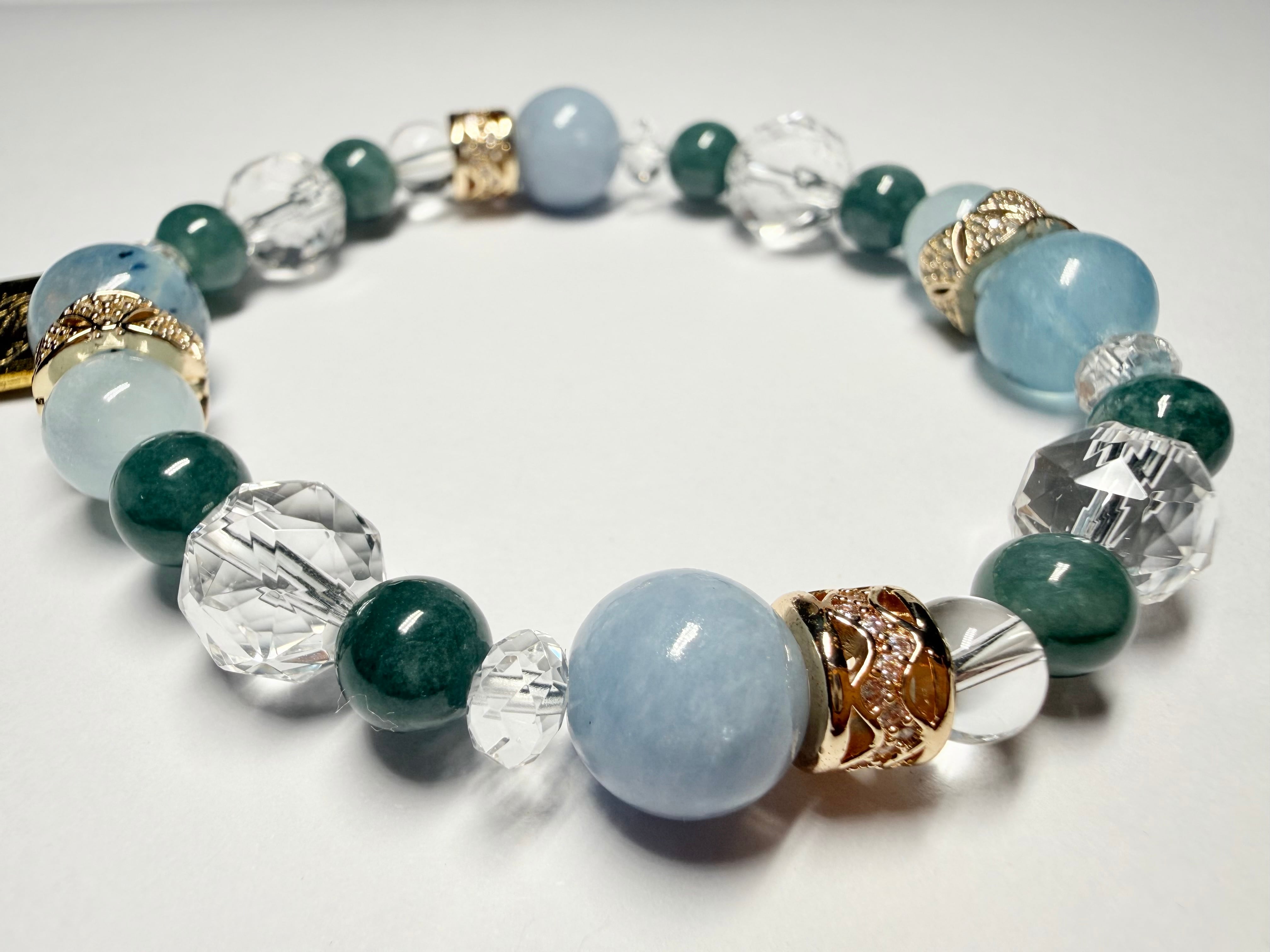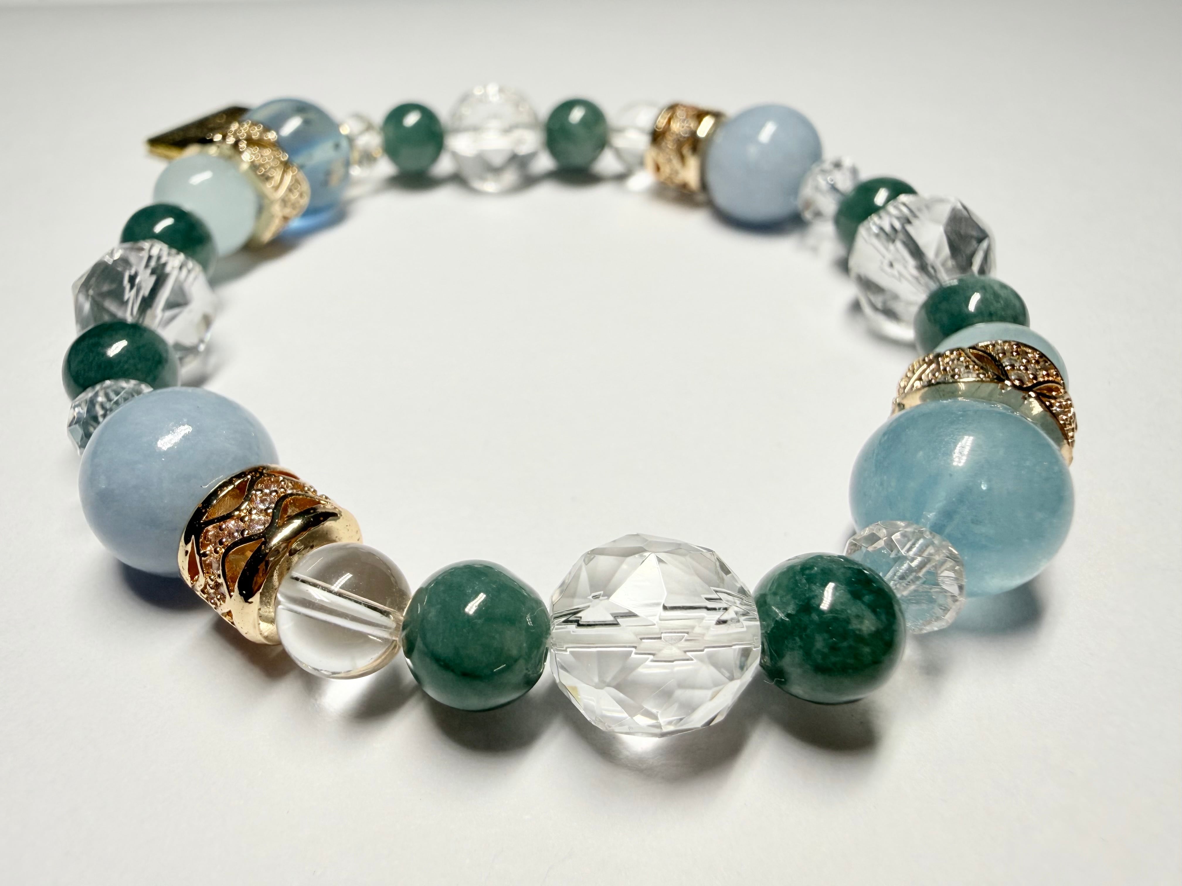 心身のエネルギーをクリアに整え、他の石たちの力を引き出しながら、ブレスレット全体を美しくまとめ上げます。