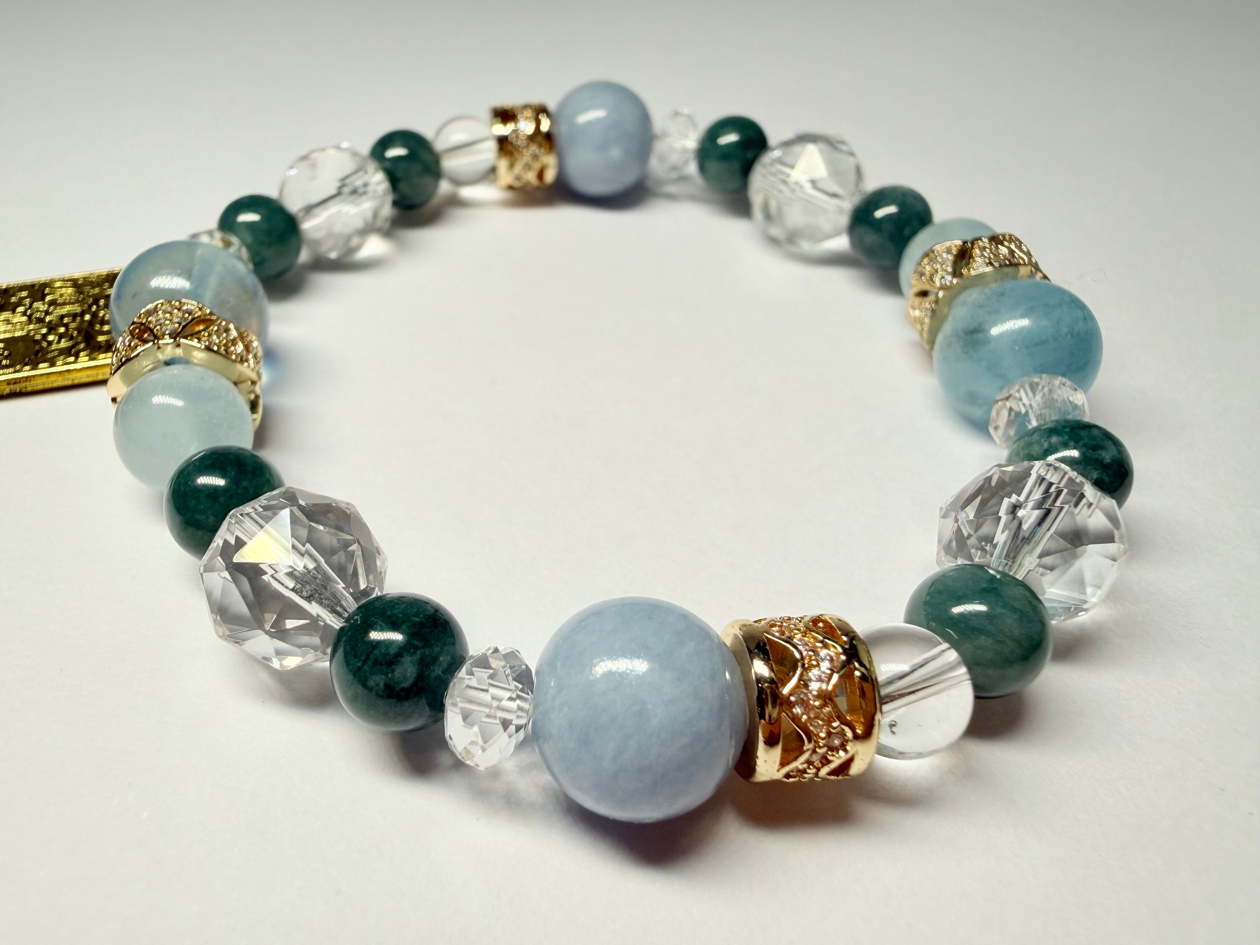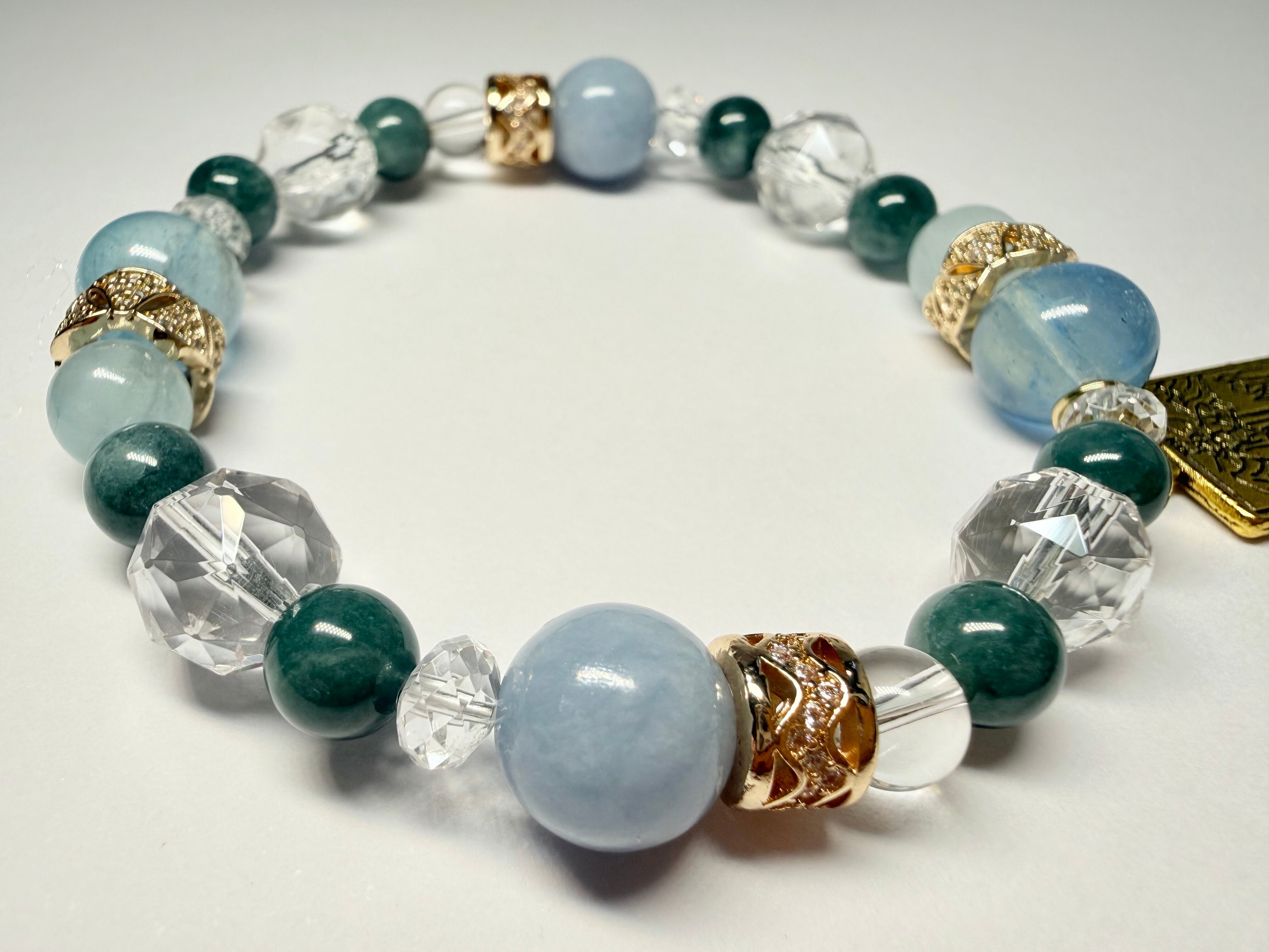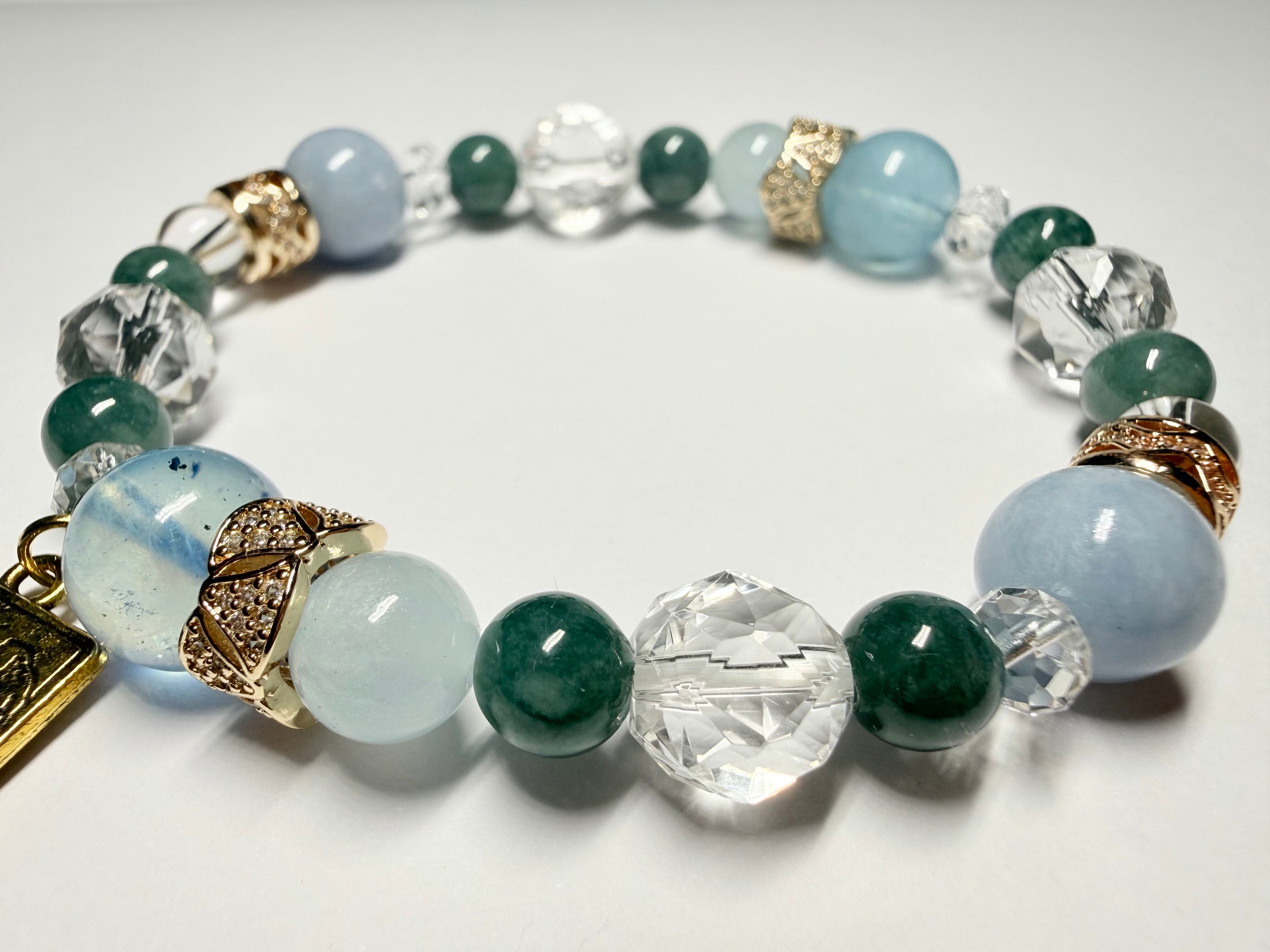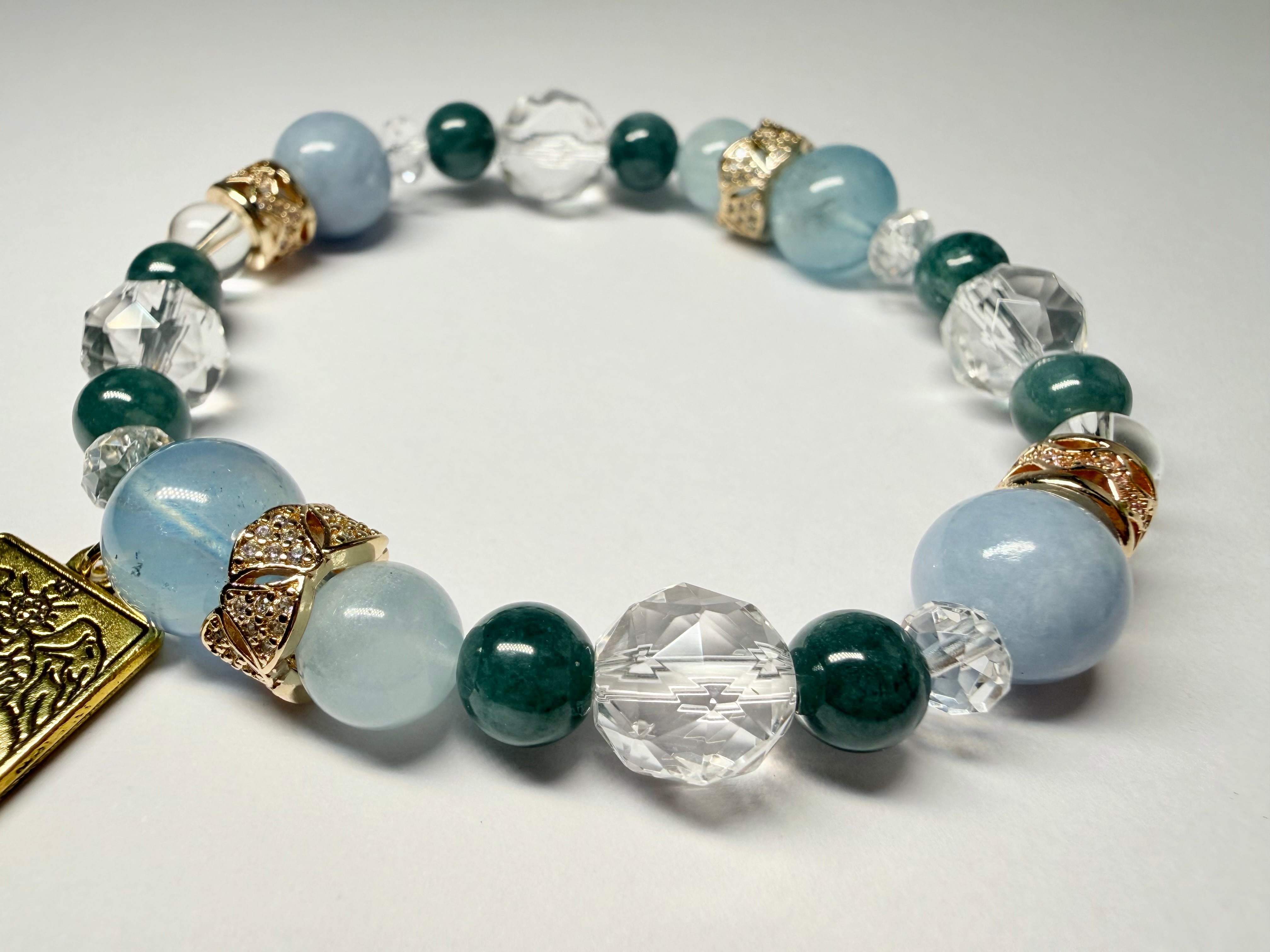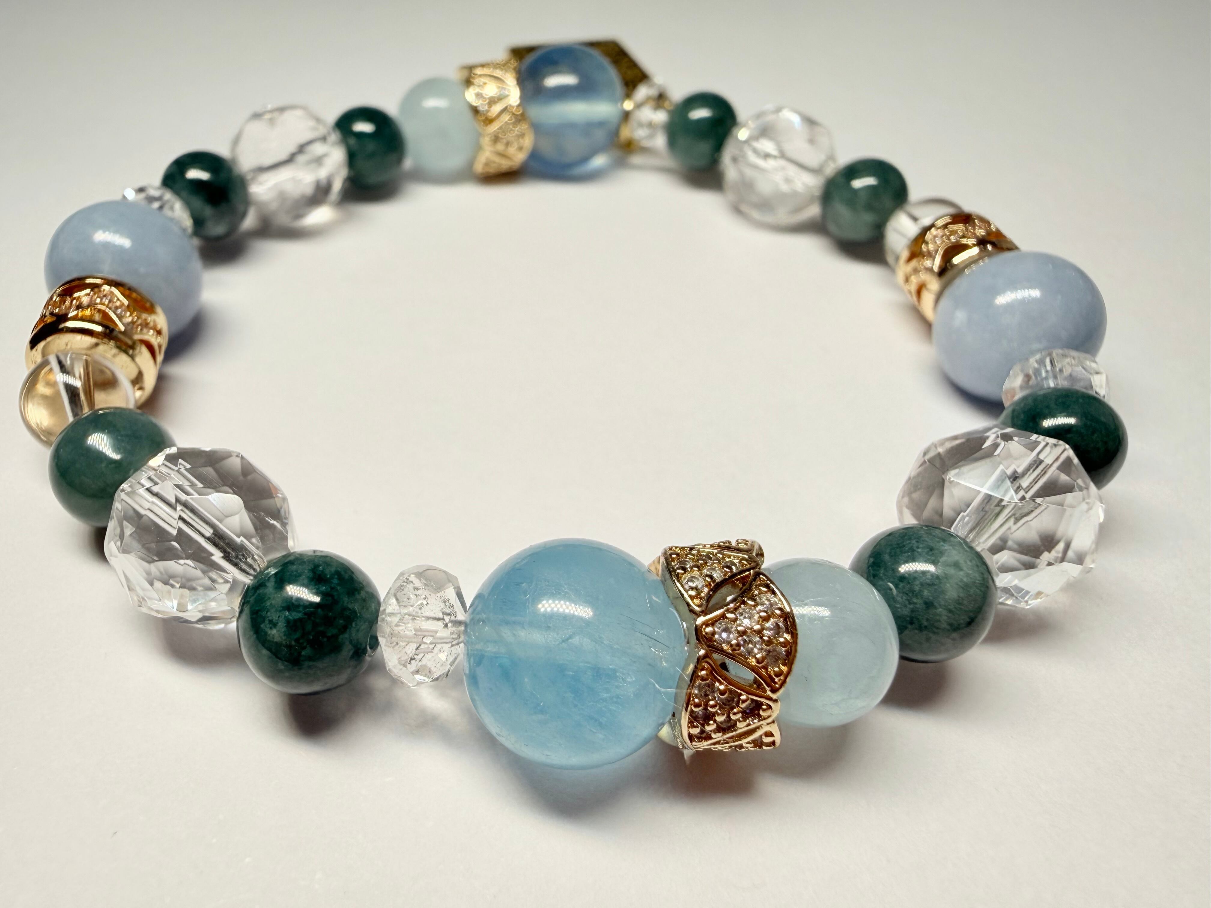 心身のエネルギーをクリアに整え、他の石たちの力を引き出しながら、ブレスレット全体を美しくまとめ上げます。