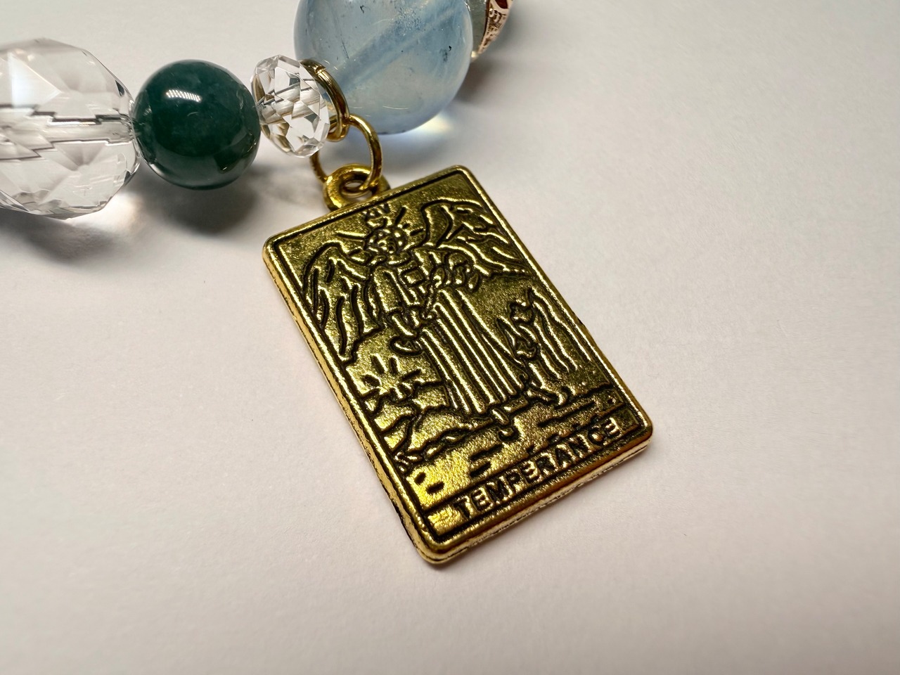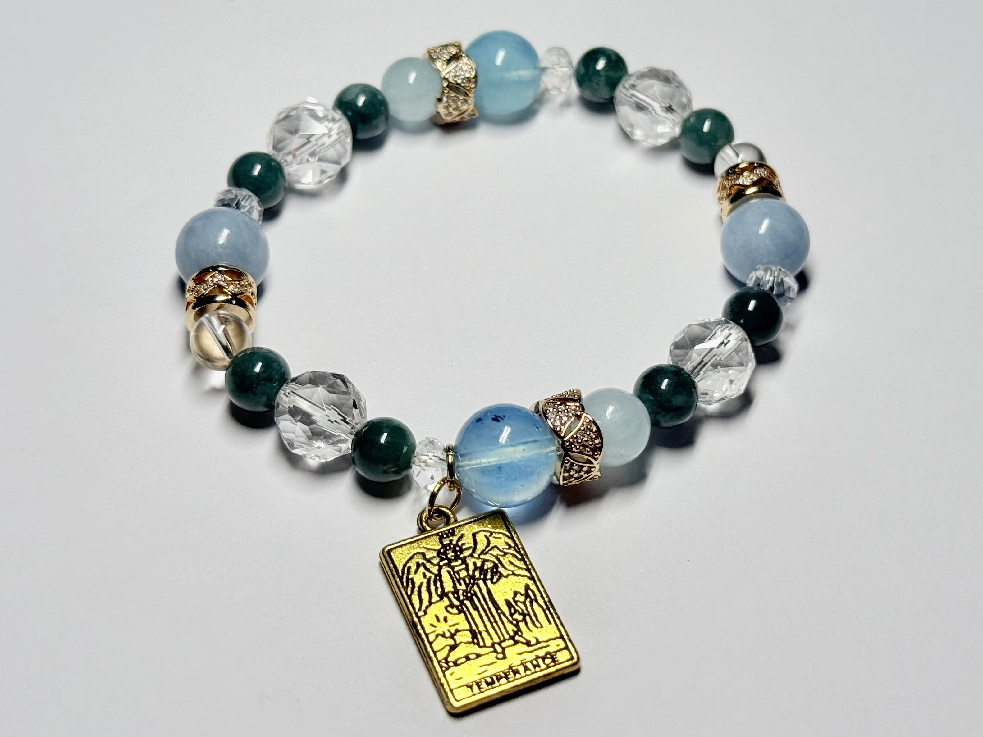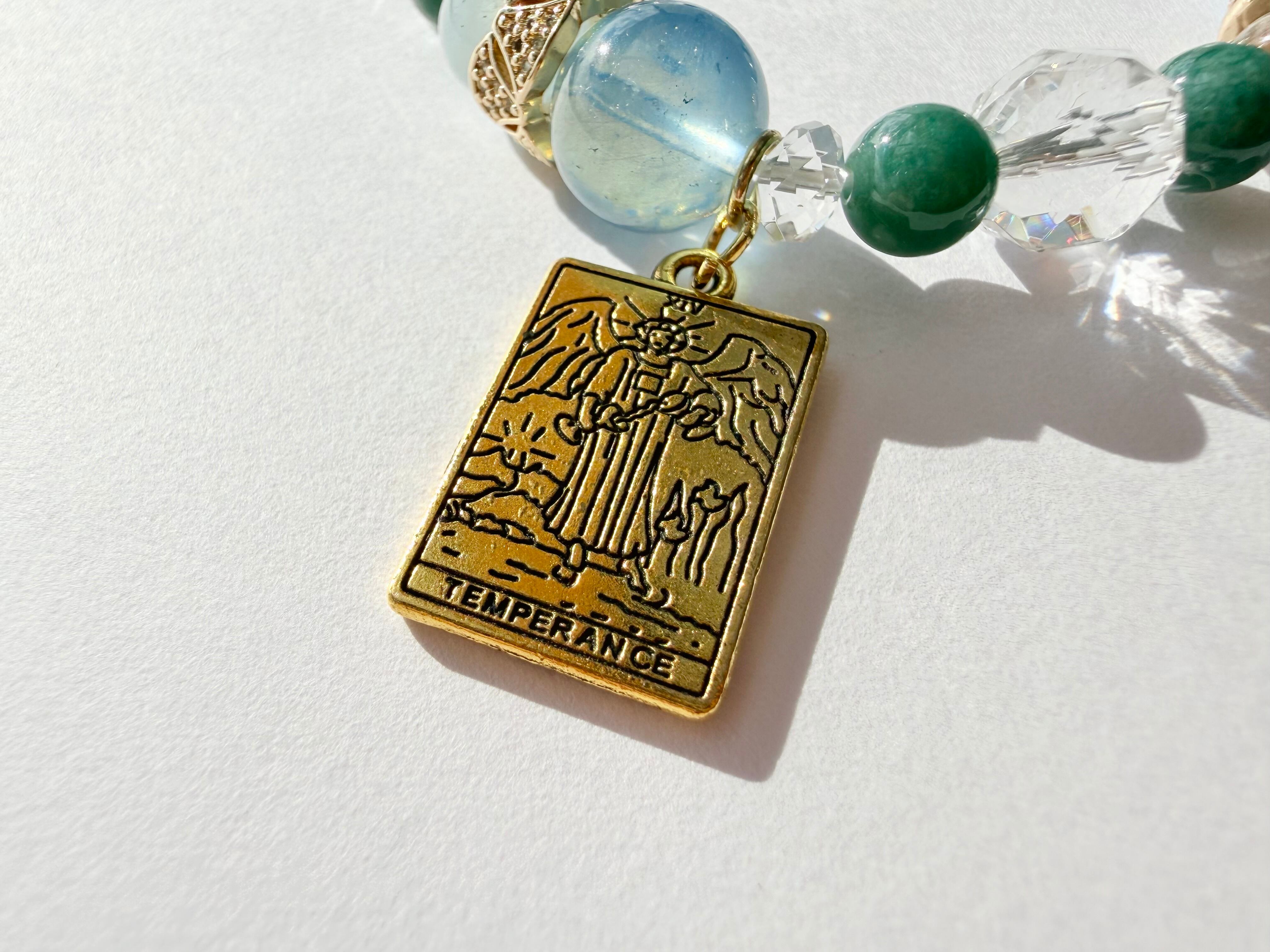 こちらのデザインブレスレットは、タロットカード《節制(Temperance)》が象徴する「調和・中庸・癒し・自然な循環」をテーマにお作りしました。
