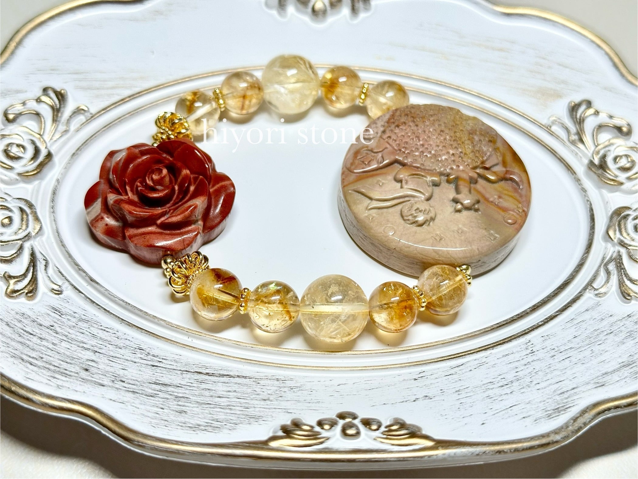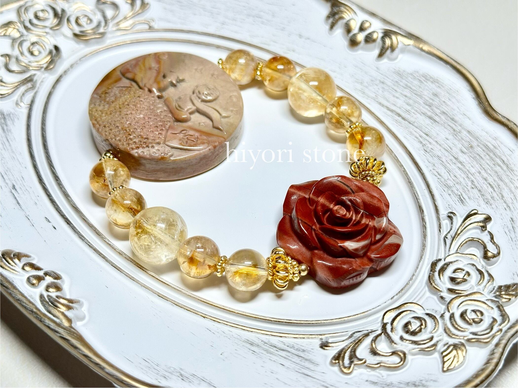 その対の位置には、王子が“大切”と気づくことができた赤い薔薇のレッドジャスパーを配置しました。