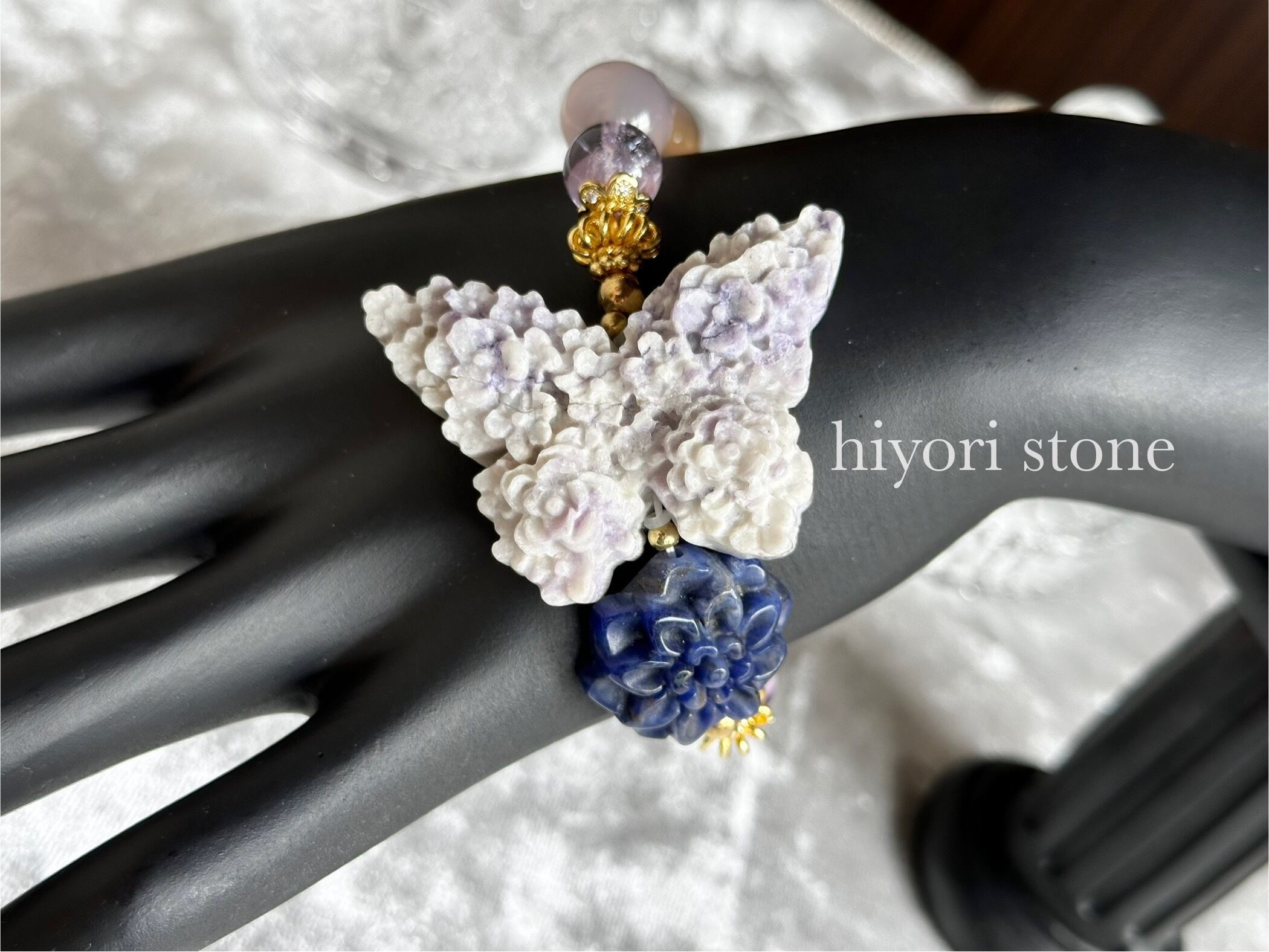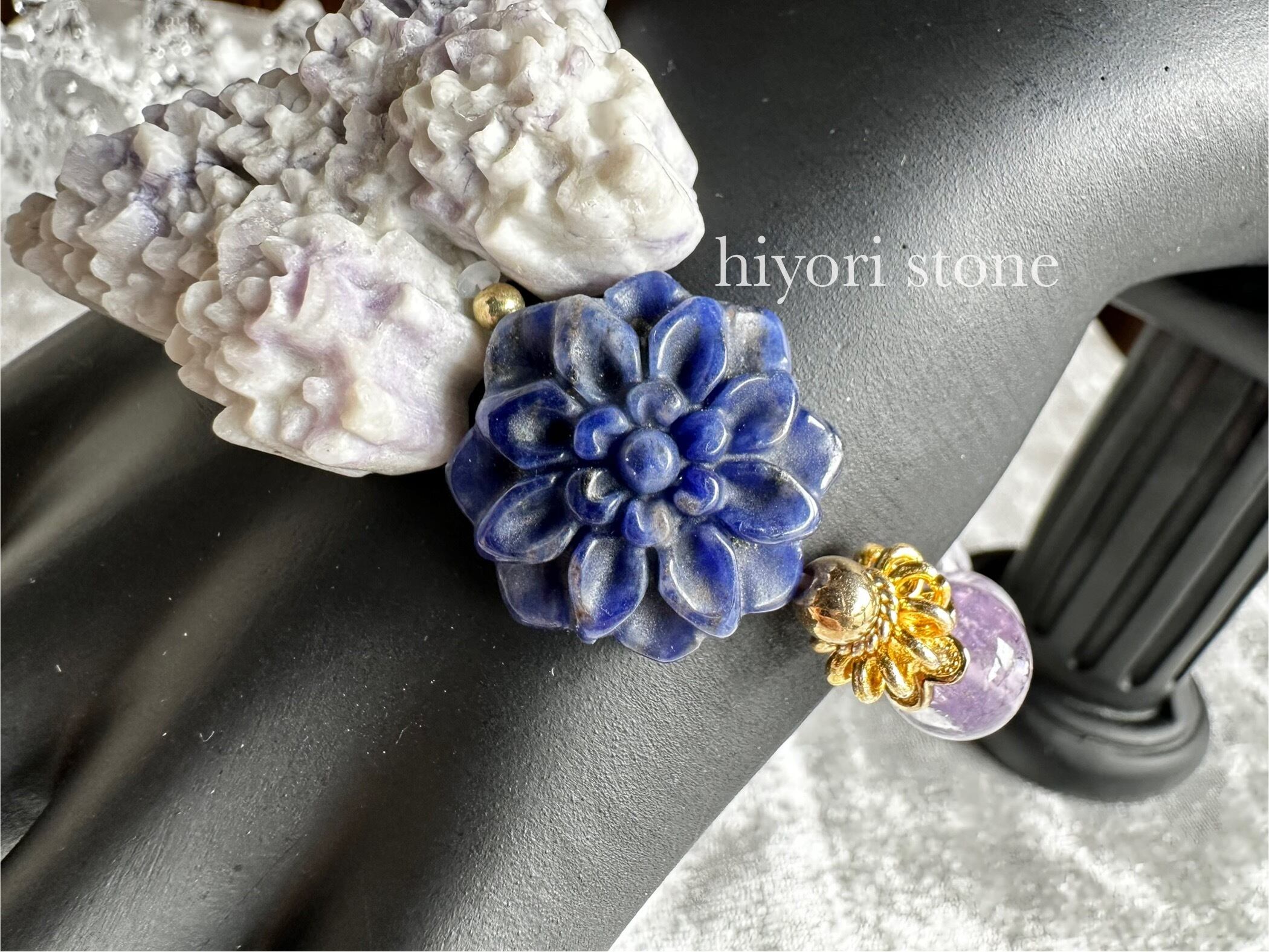 花の彫刻が施されたソーダライトは、「内なる真実を咲かせる」象徴。