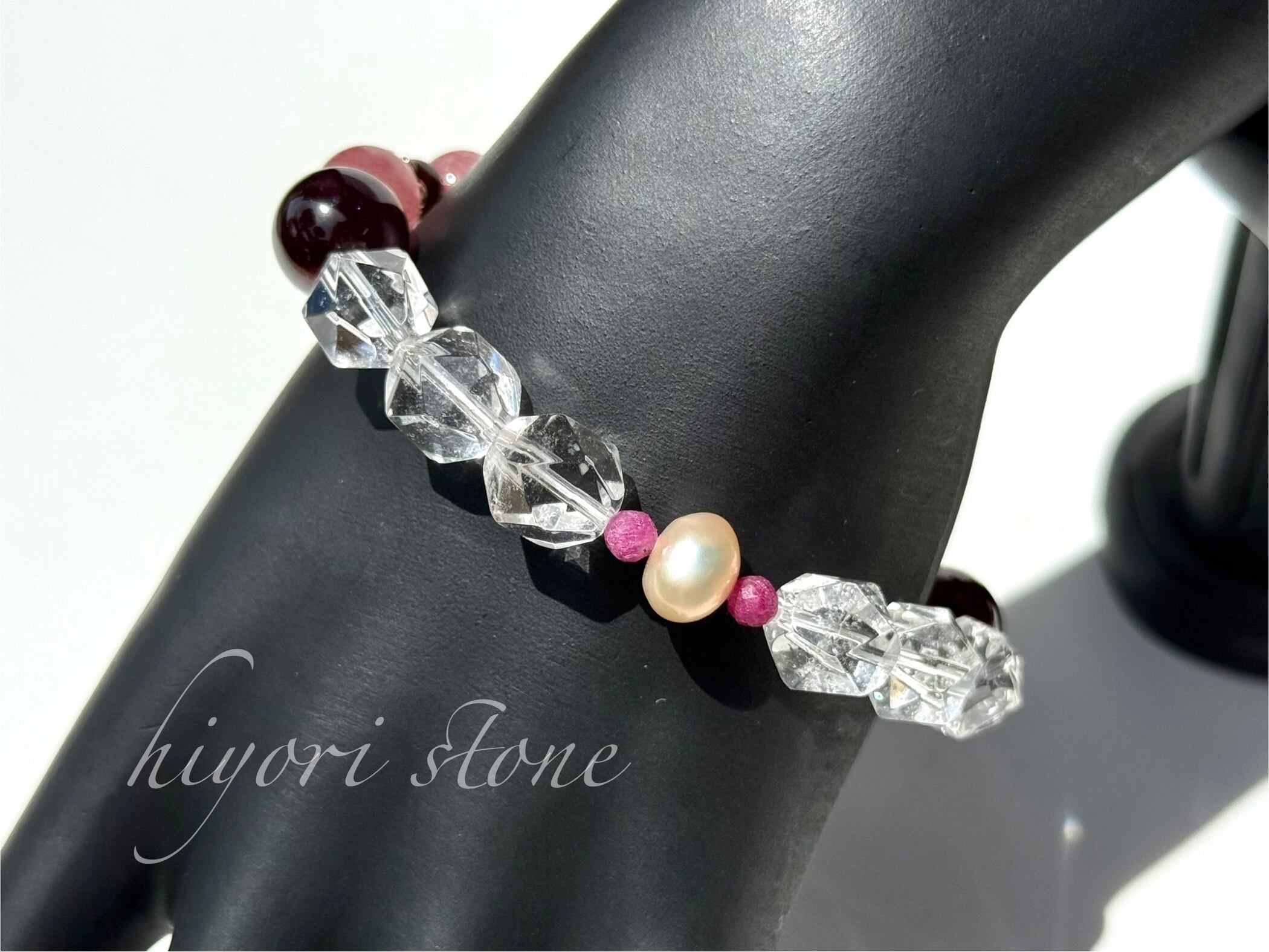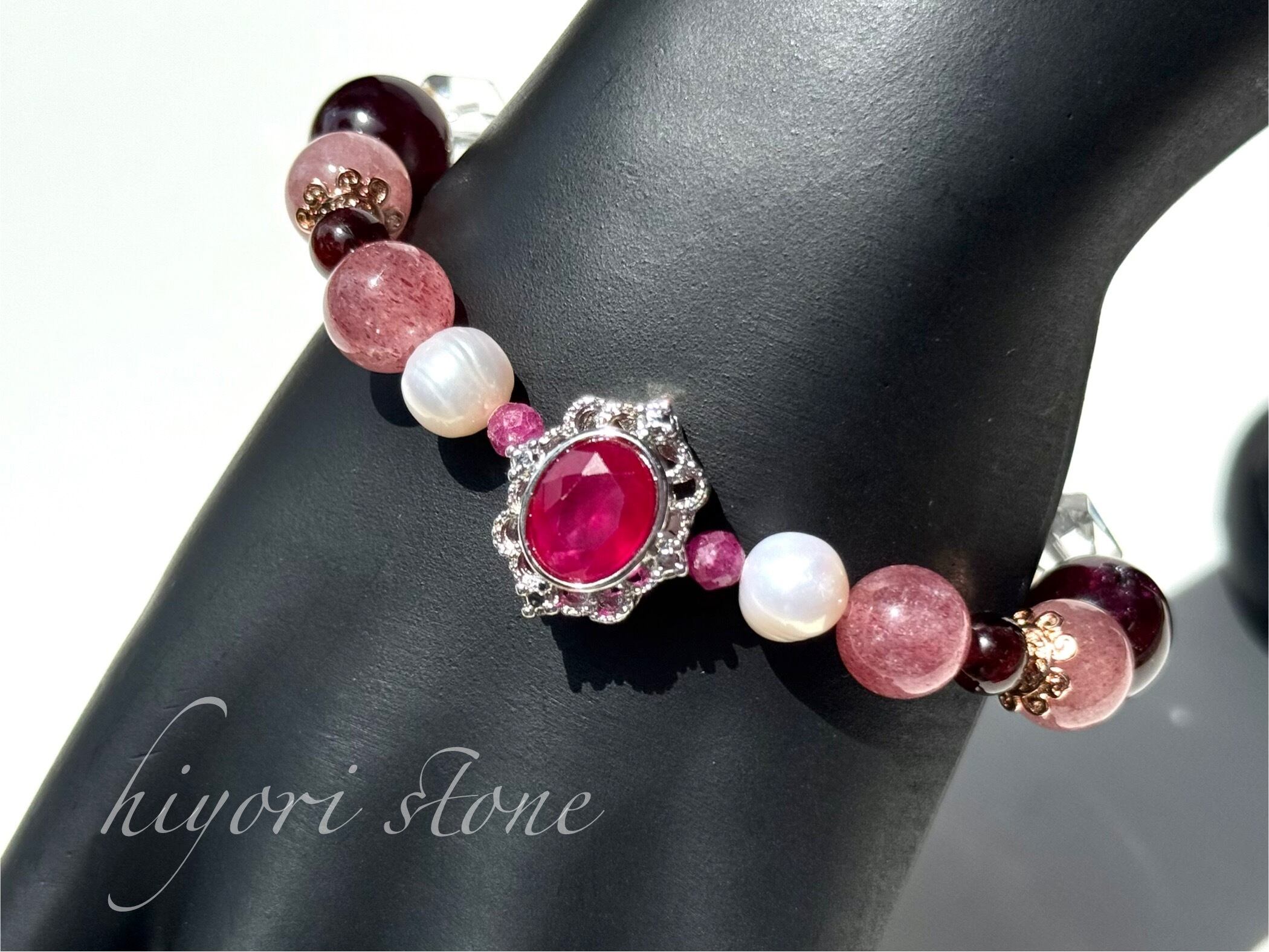 こちらのデザインブレスレットは、好きな人やパートナーと情熱的な愛を深めるための特別な組み合わせとして、ルビーとガーネットを選びました。